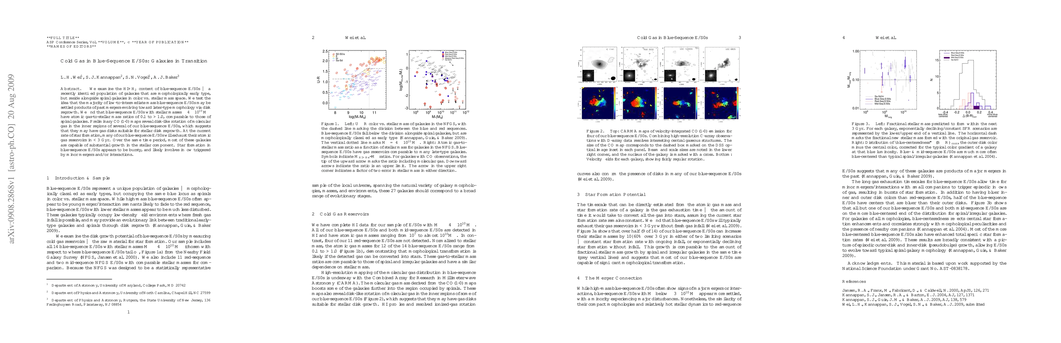 This study investigates the HI and H₂ content of blue-sequence E/S0 galaxies, suggesting they may be transitioning via disk regrowth after mergers. These galaxies show gas-to-stellar mass ratios and molecular gas disks similar to spirals, indicating potential for future morphological evolution.