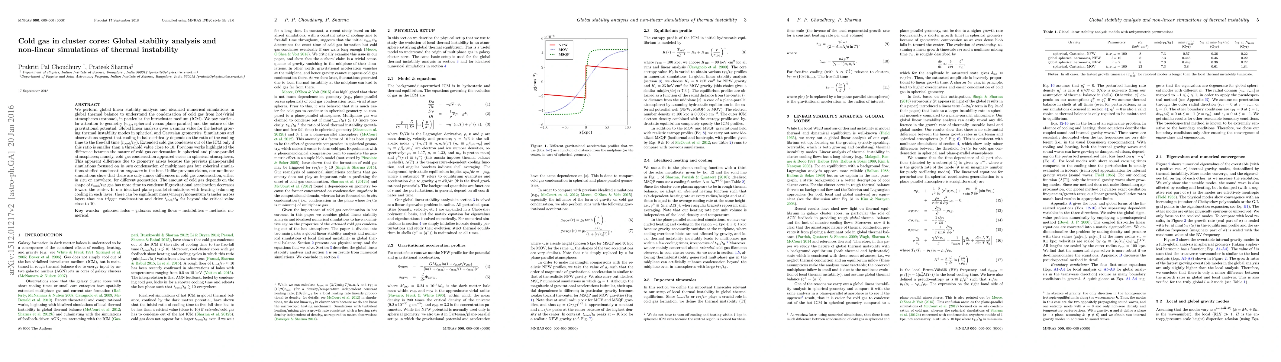 We perform global linear stability analysis and idealized numerical simulations in global thermal balance to understand the condensation of cold gas from hot/virial atmospheres (coronae), in particular the intracluster medium (ICM). We pay particular attention to geometry (e.g., spherical versus plane-parallel) and the nature of the gravitational potential. Global linear analysis gives a similar value for the fastest growing thermal instability modes in spherical and Cartesian geometries. Simulations and observations suggest that cooling in halos critically depends on the ratio of the cooling time to the free-fall time ($t_{cool}/t_{ff}$). Extended cold gas condenses out of the ICM only if this ratio is smaller than a threshold value close to 10. Previous works highlighted the difference between the nature of cold gas condensation in spherical and plane-parallel atmospheres; namely, cold gas condensation appeared easier in spherical atmospheres. This apparent difference due to geometry arises because the previous plane-parallel simulations focussed on {\em in situ} condensation of multiphase gas but spherical simulations studied condensation {\em anywhere} in the box. Unlike previous claims, our nonlinear simulations show that there are only minor differences in cold gas condensation, either in situ or anywhere, for different geometries. The amount of cold gas condensing depends on the shape of the gravitational potential well; gas has more time to condense if gravitational acceleration decreases toward the center. In our idealized simulations with heating balancing cooling in each layer, there can be significant mass/energy/momentum transfer across layers that can trigger condensation and drive $t_{cool}/t_{ff}$ far beyond the critical value close to 10. Triggered condensation is very prominent in plane-parallel simulations, in which a large amount of cold gas condenses out.