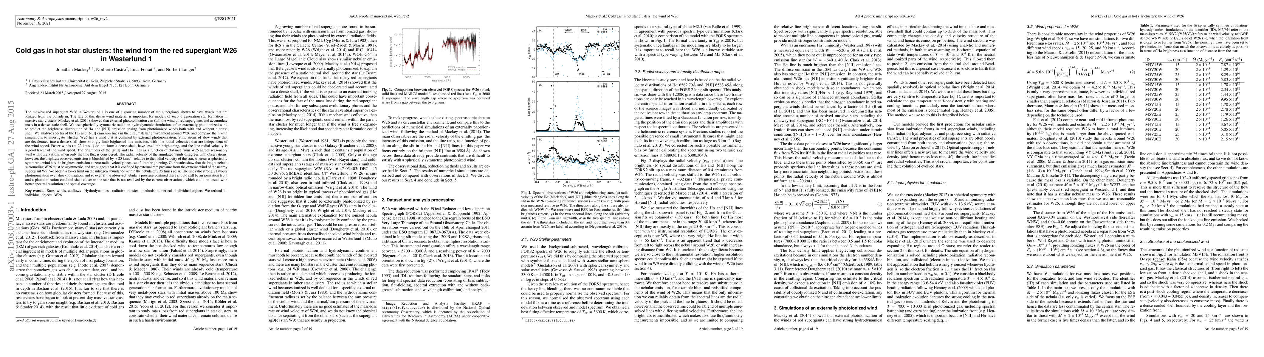 This paper investigates the ionized wind from the red supergiant W26 in Westerlund 1, finding that its wind is externally photoionized and likely accumulates in a dense shell. The asymmetric bright nebula around W26 suggests confinement by the nearby supergiant W9's wind, with a lower limit nitrogen abundance of 2.35 times solar, favoring photoionization over shock ionization.