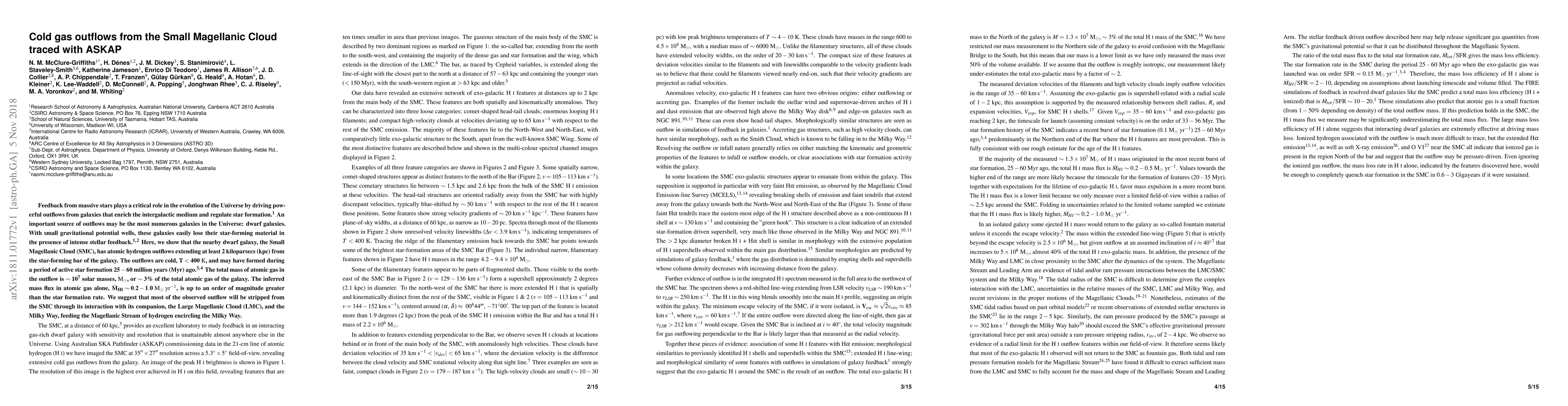 The Small Magellanic Cloud (SMC) exhibits powerful cold gas outflows driven by stellar feedback, with atomic hydrogen extending 2 kpc from its star-forming bar. These outflows, comprising $\sim 10^7$ solar masses, may have formed during a recent period of active star formation, and could be largely stripped by interactions with the Large Magellanic Cloud and the Milky Way.