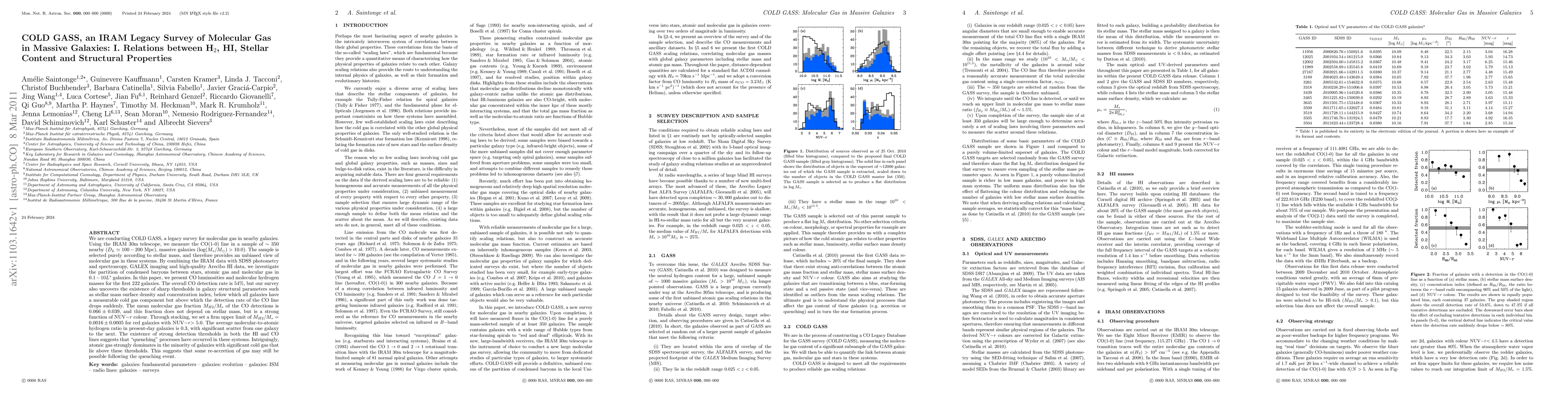 The COLD GASS survey investigates molecular gas in massive galaxies using CO(1-0) line measurements, revealing a 54% detection rate and sharp thresholds in structural parameters. The mean molecular gas fraction is 0.066, dependent on NUV-r color rather than stellar mass, suggesting "quenching" processes and potential gas re-accretion in some galaxies.