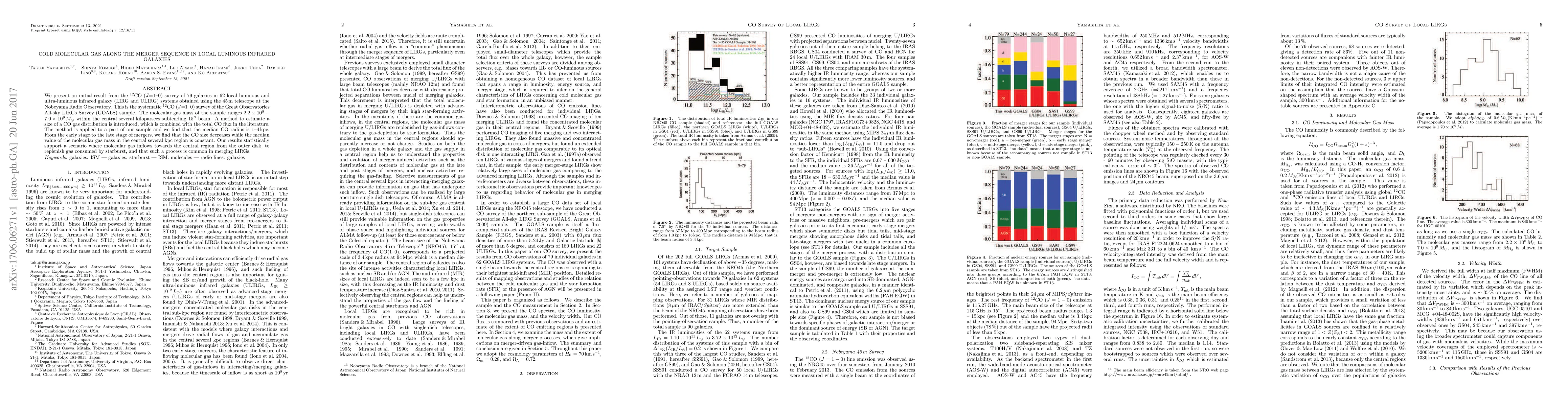 The research presents a 12CO (J=1-0) survey of 79 galaxies in local LIRG and ULIRG systems, finding that while molecular gas size decreases from early to late merger stages, mass in central regions remains constant. This suggests a scenario of gas inflow from outer disks to central regions to sustain starburst activity in merging LIRGs.