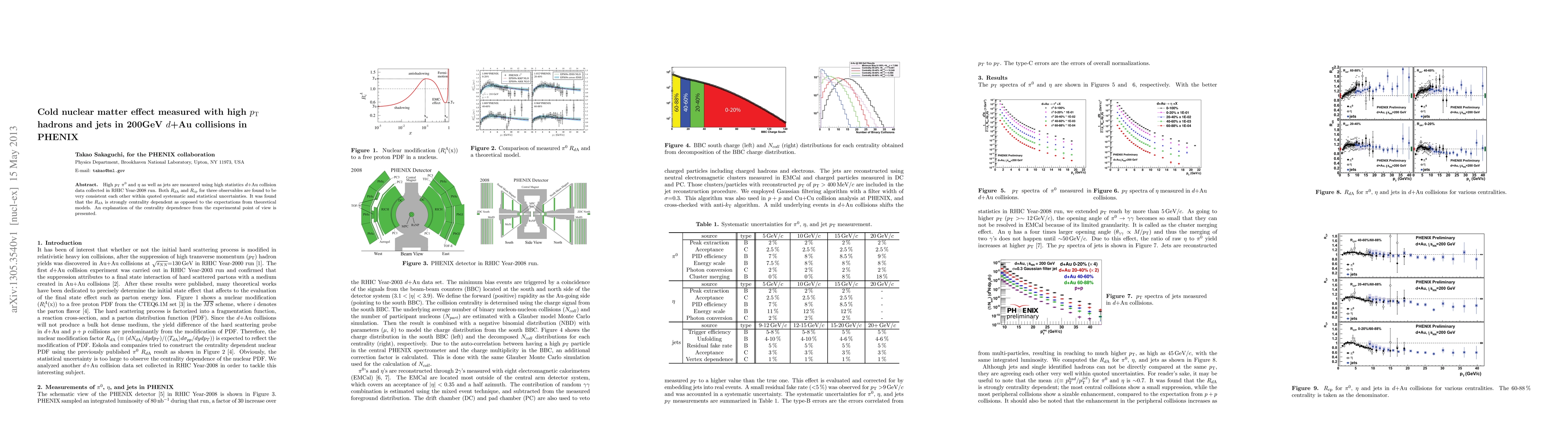 High pT \pi^0 and \eta, as well as jets are measured using high statistics d+Au collision data collected in RHIC Year-2008 run. Both R_{dA} and R_{cp} for three observables are found to be very consistent each other within quoted systematic and statistical uncertainties. It was found that the R_{dA} is strongly centrality dependent as opposed to the expectations from theoretical models. An explanation of the centrality dependence from the experimental point of view is presented.