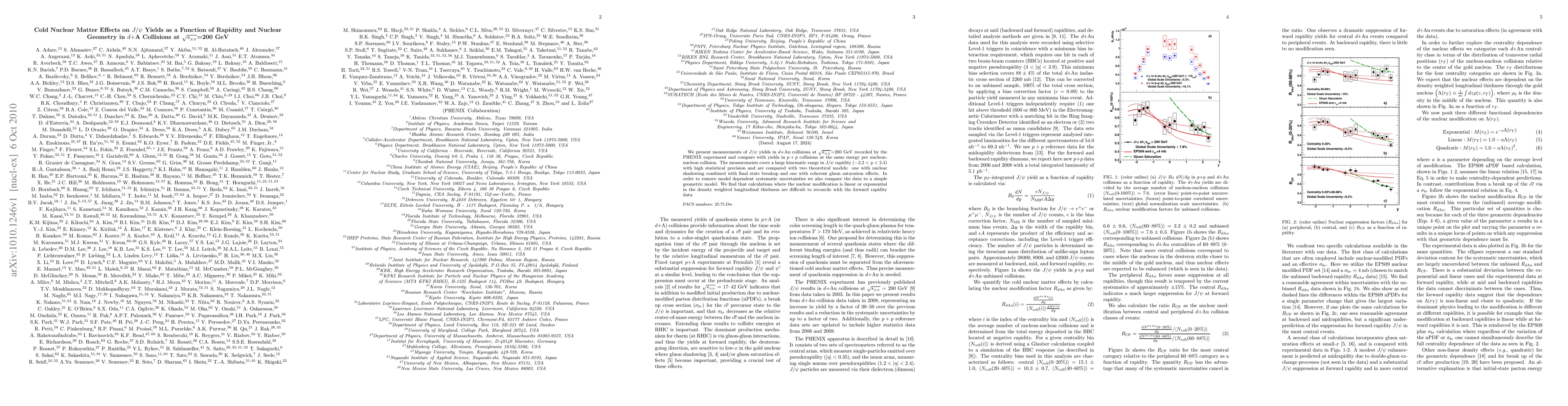 This study measures J/psi yields in deuteron-gold collisions at 200 GeV, comparing them with proton-proton collisions to analyze cold nuclear matter effects. The results indicate discrepancies between observed data and theoretical models, especially those assuming linear or exponential nuclear modification.