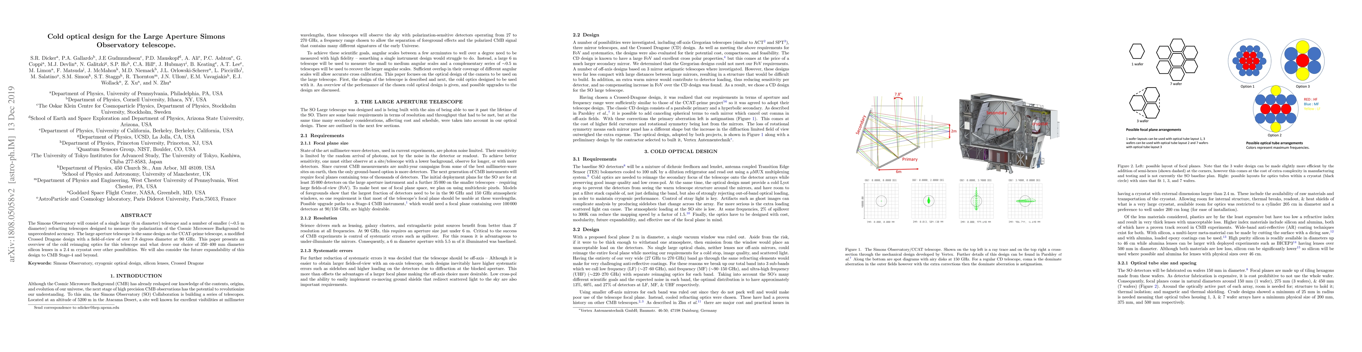 This paper discusses the cold optical design for the Large Aperture Telescope of the Simons Observatory, focusing on the choice of 350-400 mm diameter silicon lenses within a 2.4 m cryostat for optimal performance in measuring Cosmic Microwave Background polarization, and explores the design's future scalability for advanced CMB studies.