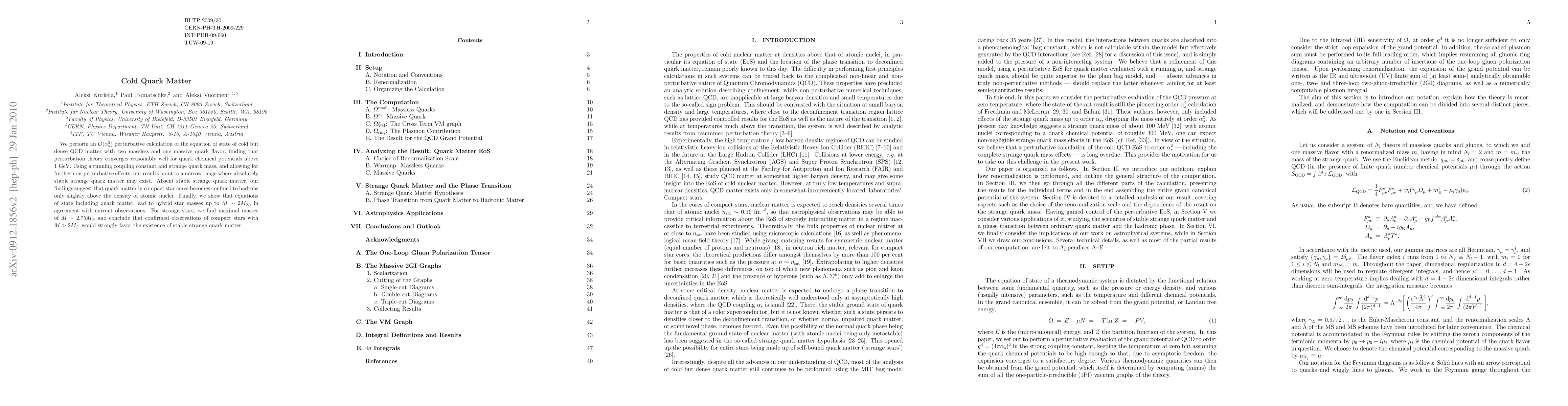 This paper investigates the equation of state for cold, dense quark matter using perturbative QCD calculations, finding stable strange quark matter in a narrow range. It concludes that hybrid stars can have masses up to 2 solar masses, while strange stars may reach up to 2.75 solar masses, suggesting that observed compact stars with masses greater than 2 solar masses would support the existence of stable strange quark matter.