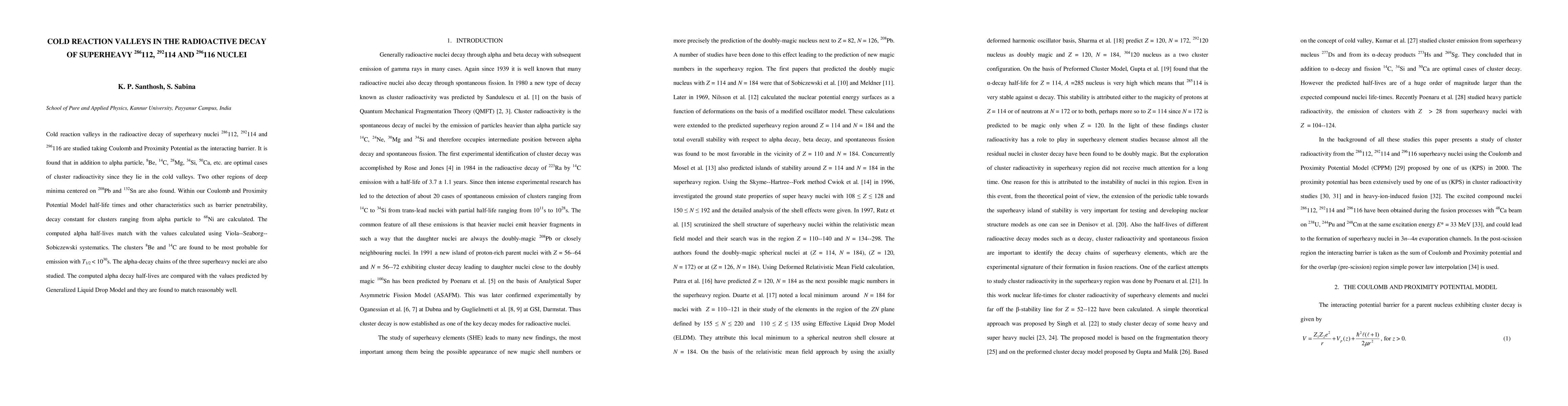 Cold reaction valleys in the radioactive decay of superheavy nuclei {286}^112, {292}^114 and {296}^116 are studied taking Coulomb and Proximity Potential as the interacting barrier. It is found that in addition to alpha particle, 8^Be, 14^C, 28^Mg, 34^Si, 50^Ca, etc. are optimal cases of cluster radioactivity since they lie in the cold valleys. Two other regions of deep minima centered on 208^Pb and 132^Sn are also found. Within our Coulomb and Proximity Potential Model half-life times and other characteristics such as barrier penetrability, decay constant for clusters ranging from alpha particle to 68^Ni are calculated. The computed alpha half-lives match with the values calculated using Viola--Seaborg--Sobiczewski systematics. The clusters 8^Be and 14^C are found to be most probable for emission with T_1/2 < 1030s. The alpha-decay chains of the three superheavy nuclei are also studied. The computed alpha decay half-lives are compared with the values predicted by Generalized Liquid Drop Model and they are found to match reasonably well.