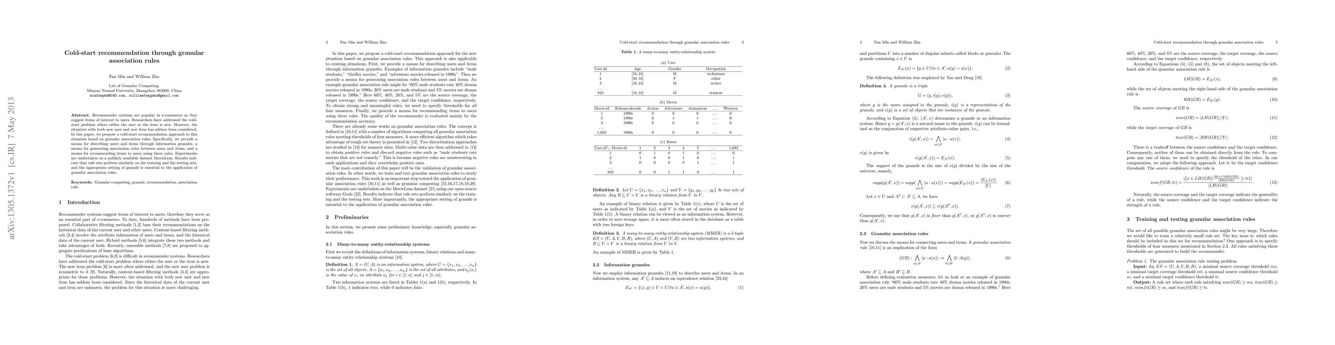 A new method for building cold-start recommender systems using granular association rules is proposed.