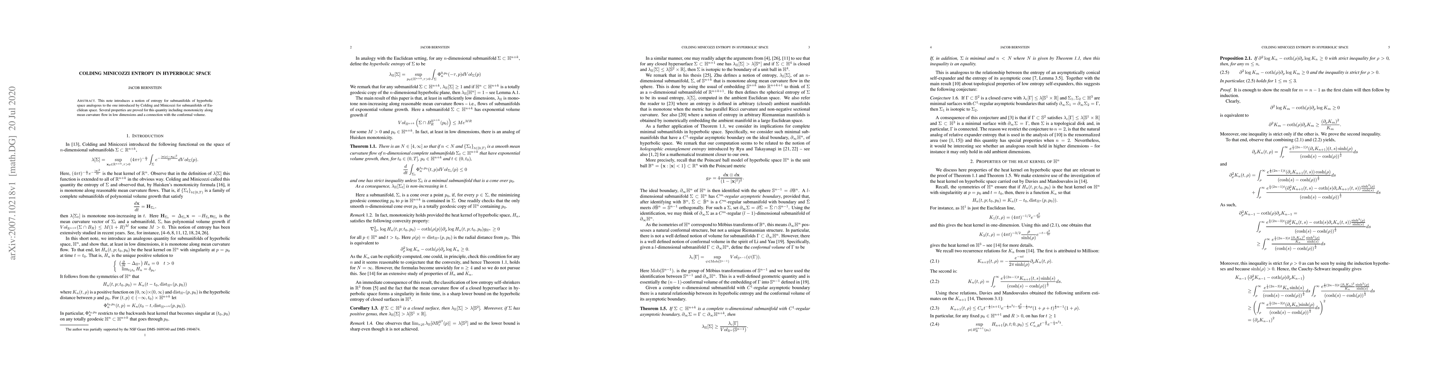 This note introduces a notion of entropy for submanifolds of hyperbolic space analogous to the one introduced by Colding and Minicozzi for submanifolds of Euclidean space. Several properties are proved for this quantity including monotonicity along mean curvature flow in low dimensions and a connection with the conformal volume.