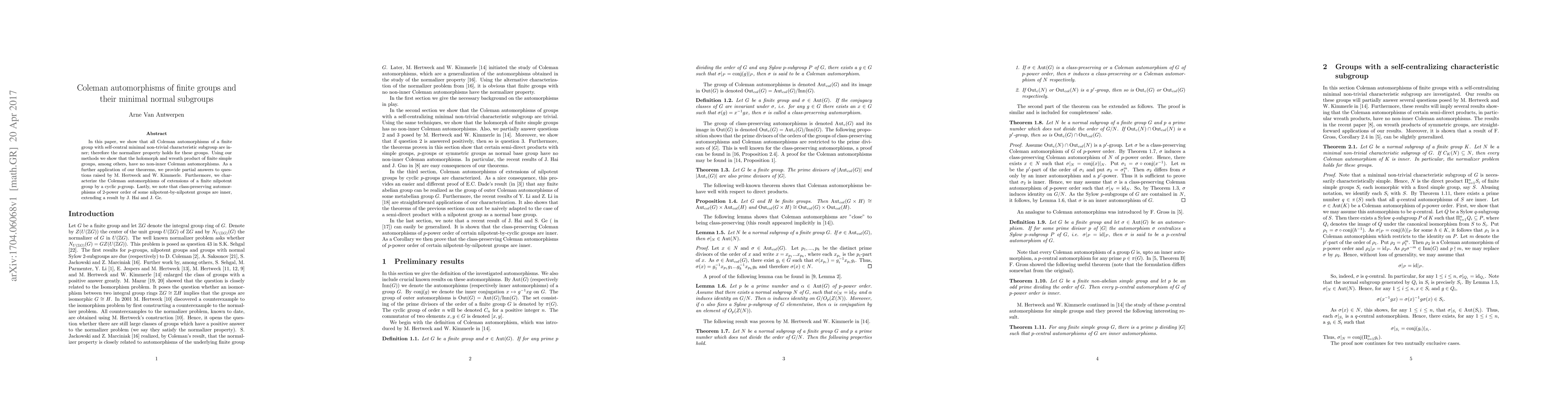 This research demonstrates that Coleman automorphisms of finite groups with specific characteristic subgroups are inner, establishing the normalizer property. It also shows that holomorphs and wreath products of finite simple groups lack non-inner Coleman automorphisms, providing answers to related questions and characterizing Coleman automorphisms for extensions of nilpotent groups by cyclic $p$-groups.