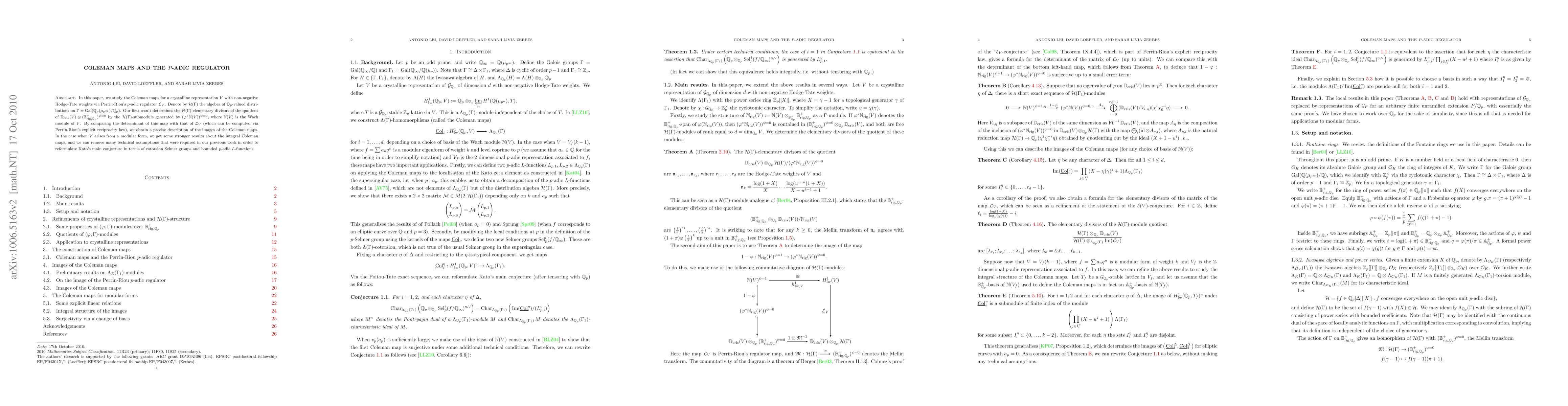 This paper investigates Coleman maps for crystalline Galois representations using Perrin-Riou's p-adic regulator. It determines the H(Γ)-elementary divisors of a specific quotient and describes the images of the Coleman maps, particularly for modular form-derived representations, leading to stronger results and fewer technical assumptions.