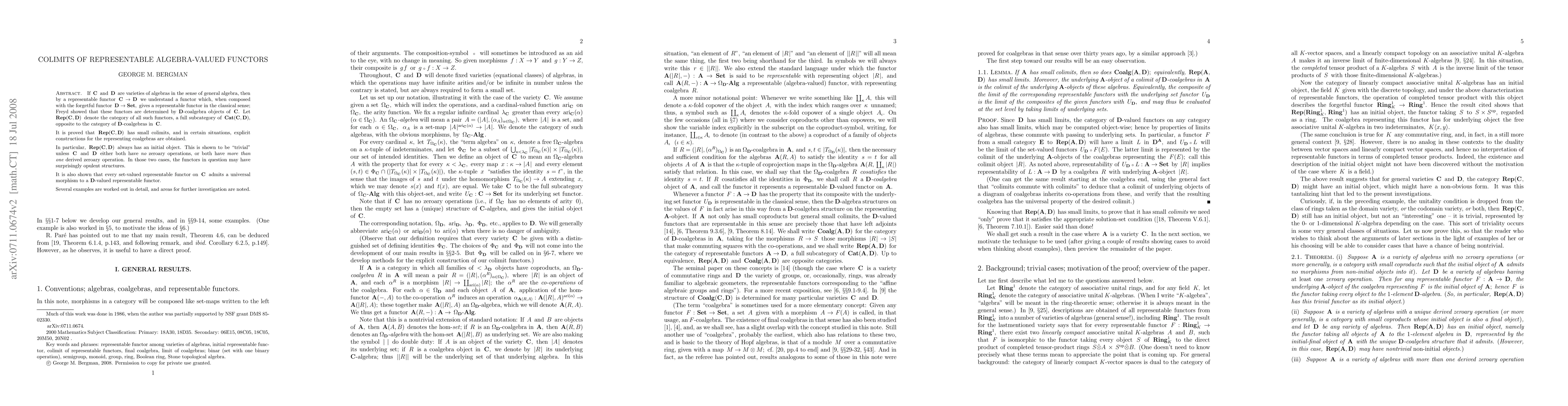 If C and D are varieties of algebras in the sense of general algebra, then by a representable functor C --> D we understand a functor which, when composed with the forgetful functor D --> Set, gives a representable functor in the classical sense; Freyd showed that these functors are determined by D-coalgebra objects of C. Let Rep(C,D) denote the category of all such functors, a full subcategory of Cat(C,D), opposite to the category of D-coalgebras in C. It is proved that Rep(C,D) has small colimits, and in certain situations, explicit constructions for the representing coalgebras are obtained. In particular, Rep(C,D) always has an initial object. This is shown to be "trivial" unless C and D either both have_no_ zeroary operations, or both have _more_than_one_ derived zeroary operation. In those two cases, the functors in question may have surprisingly opulent structures. It is also shown that every set-valued representable functor on C admits a universal morphism to a D-valued representable functor. Several examples are worked out in detail, and areas for further investigation noted.