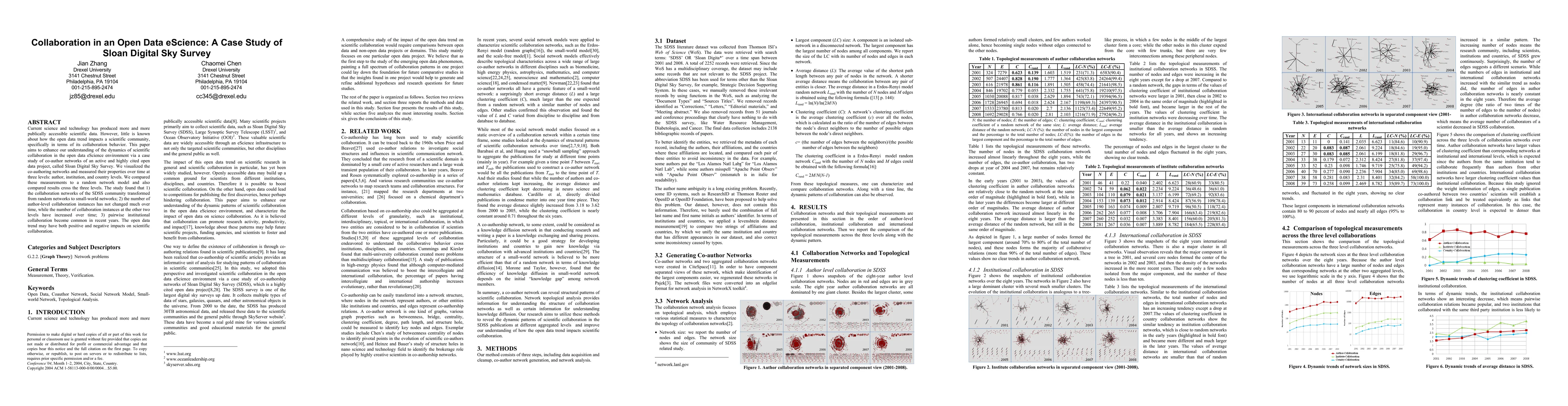 This study examines the collaboration dynamics within the Sloan Digital Sky Survey (SDSS) open data project, revealing a shift from random to small-world networks and an increase in institutional and country-level collaborations over time, while author-level collaborations remain stable. The findings suggest mixed impacts of open data on scientific collaboration.