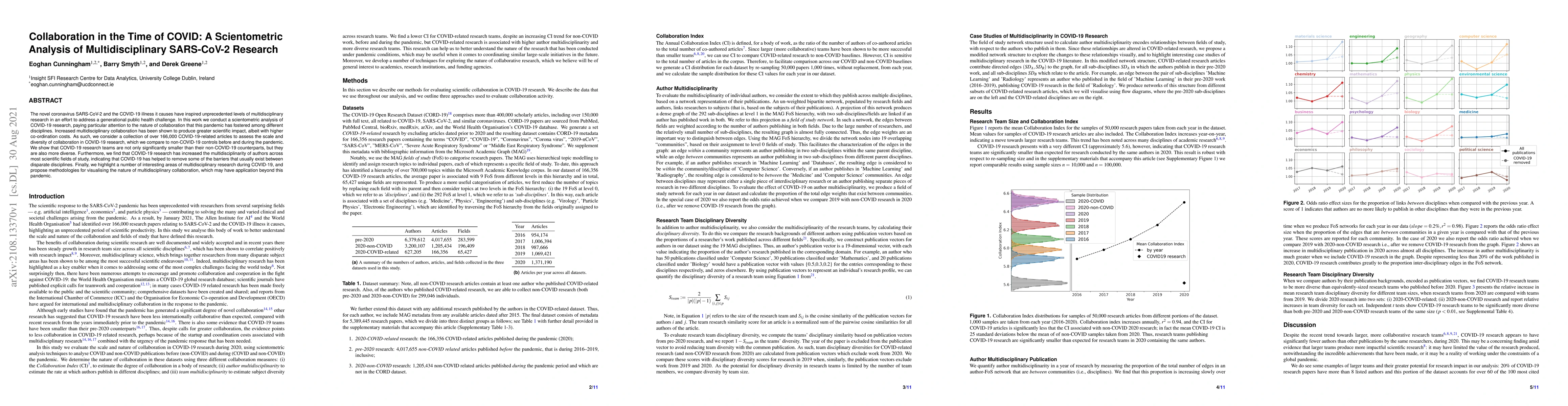 This paper conducts a scientometric analysis of over 166,000 SARS-CoV-2 research articles, revealing that COVID-19 research fosters smaller, more diverse, and multidisciplinary teams compared to non-COVID-19 research, indicating reduced disciplinary barriers. The study proposes methodologies for visualizing multidisciplinary collaboration.