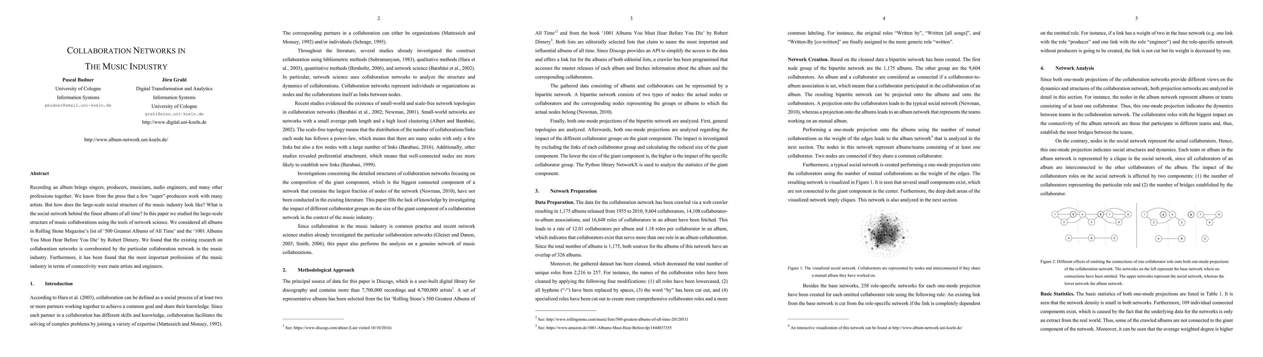 Recording an album brings singers, producers, musicians, audio engineers, and many other professions together. We know from the press that a few "super"-producers work with many artists. But how does the large-scale social structure of the music industry look like? What is the social network behind the finest albums of all time? In this paper we studied the large-scale structure of music collaborations using the tools of network science. We considered all albums in Rolling Stone Magazine's list of '500 Greatest Albums of All Time' and the '1001 Albums You Must Hear Before You Die' by Robert Dimery. We found that the existing research on collaboration networks is corroborated by the particular collaboration network in the music industry. Furthermore, it has been found that the most important professions of the music industry in terms of connectivity were main artists and engineers.