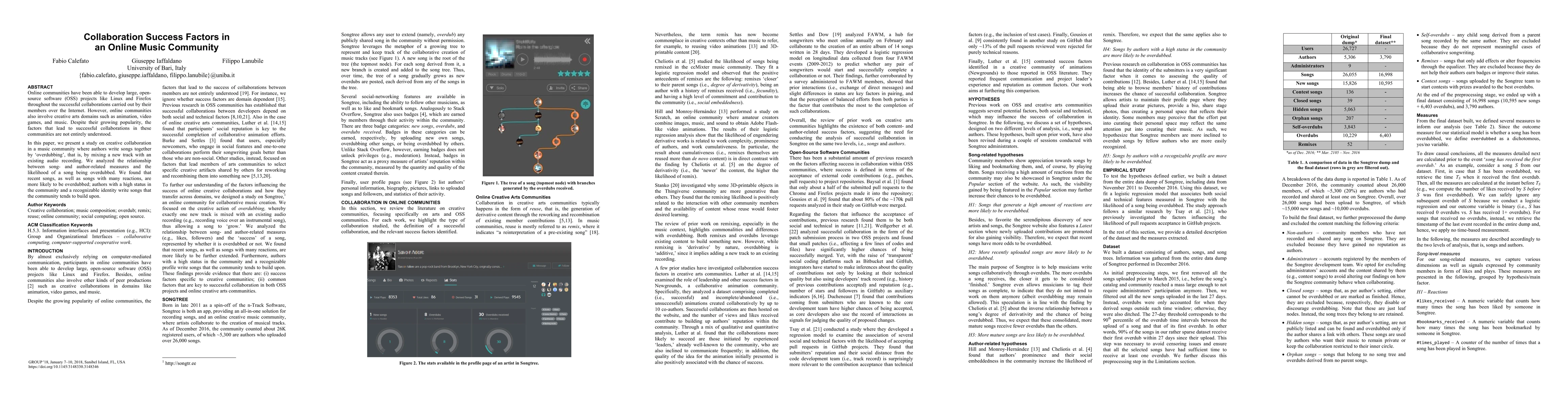 Online communities have been able to develop large, open-source software (OSS) projects like Linux and Firefox throughout the successful collaborations carried out by their members over the Internet. However, online communities also involve creative arts domains such as animation, video games, and music. Despite their growing popularity, the factors that lead to successful collaborations in these communities are not entirely understood. In this paper, we present a study on creative collaboration in a music community where authors write songs together by 'overdubbing,' that is, by mixing a new track with an existing audio recording. We analyzed the relationship between song- and author-related measures and the likelihood of a song being overdubbed. We found that recent songs, as well as songs with many reactions, are more likely to be overdubbed; authors with a high status in the community and a recognizable identity write songs that the community tends to build upon.