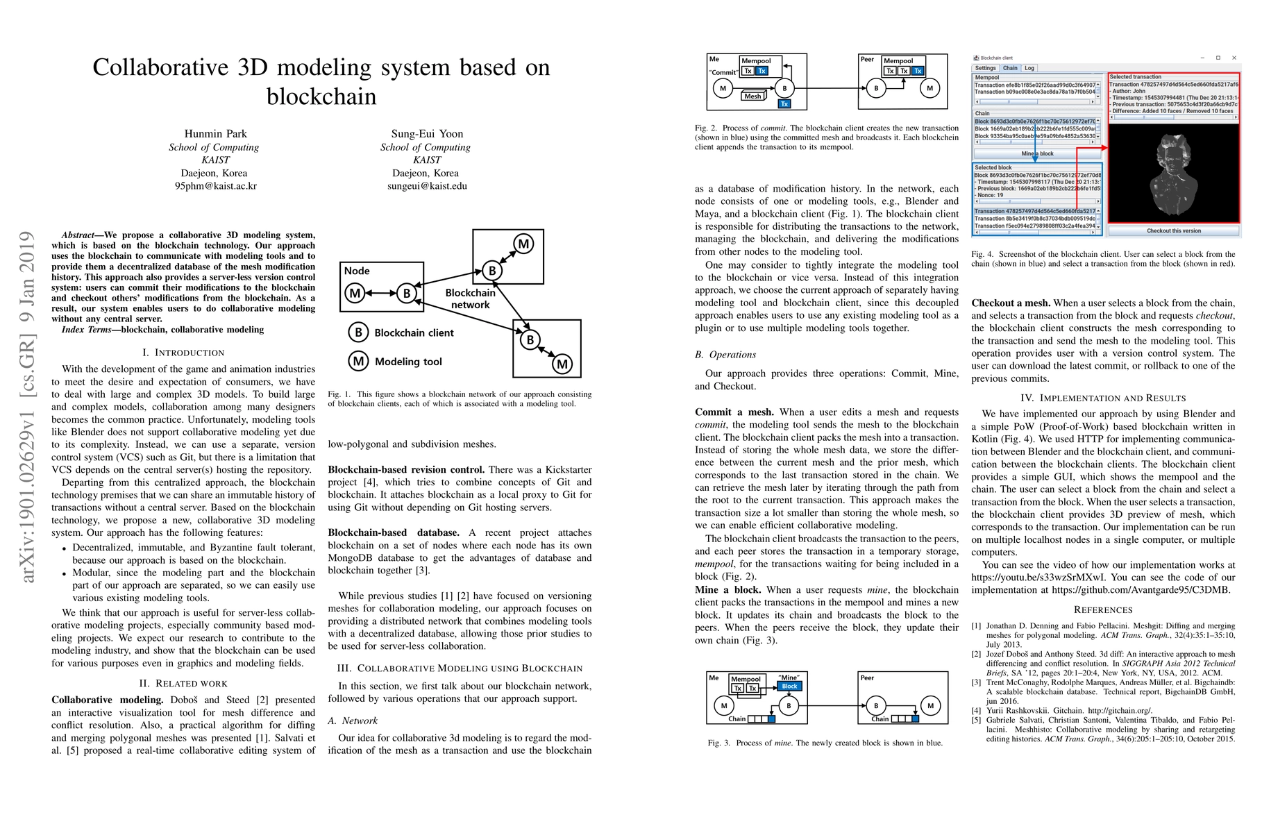 This research introduces a blockchain-based collaborative 3D modeling system that offers decentralized version control, allowing users to commit and retrieve modifications without a central server, leveraging blockchain for a mesh modification history.