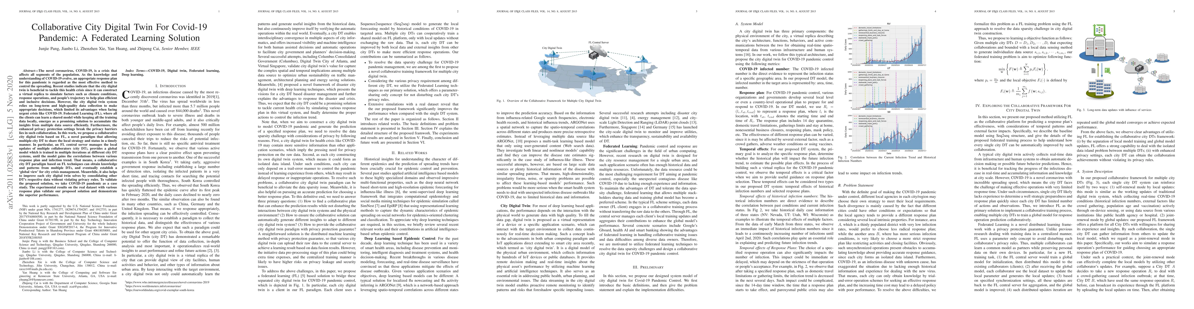 In this work, we propose a collaborative city digital twin based on FL, a novel paradigm that allowing multiple city DT to share the local strategy and status in a timely manner. In particular, an FL central server manages the local updates of multiple collaborators (city DT), provides a global model which is trained in multiple iterations at different city DT systems, until the model gains the correlations between various response plan and infection trend. That means, a collaborative city DT paradigm based on FL techniques can obtain knowledge and patterns from multiple DTs, and eventually establish a `global view' for city crisis management. Meanwhile, it also helps to improve each city digital twin selves by consolidating other DT's respective data without violating privacy rules. To validate the proposed solution, we take COVID-19 pandemic as a case study. The experimental results on the real dataset with various response plan validate our proposed solution and demonstrate the superior performance.