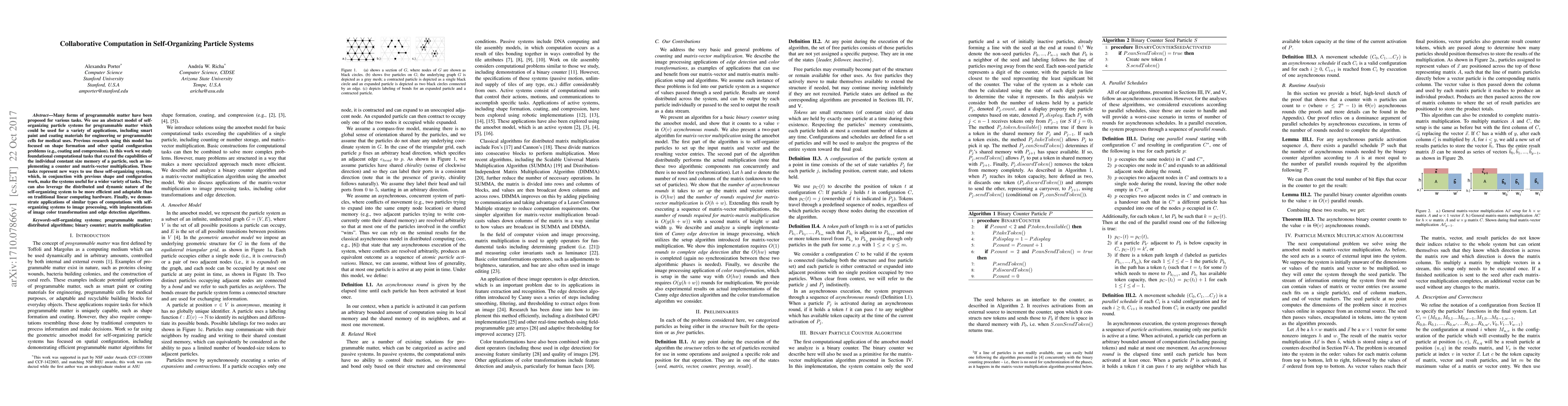 This paper explores collaborative computation in self-organizing particle systems, demonstrating foundational tasks like counters and matrix-vector multiplication beyond individual particle capabilities. It highlights the potential for broader applications in engineering and medicine, and showcases efficient image processing algorithms leveraging the system's distributed nature.