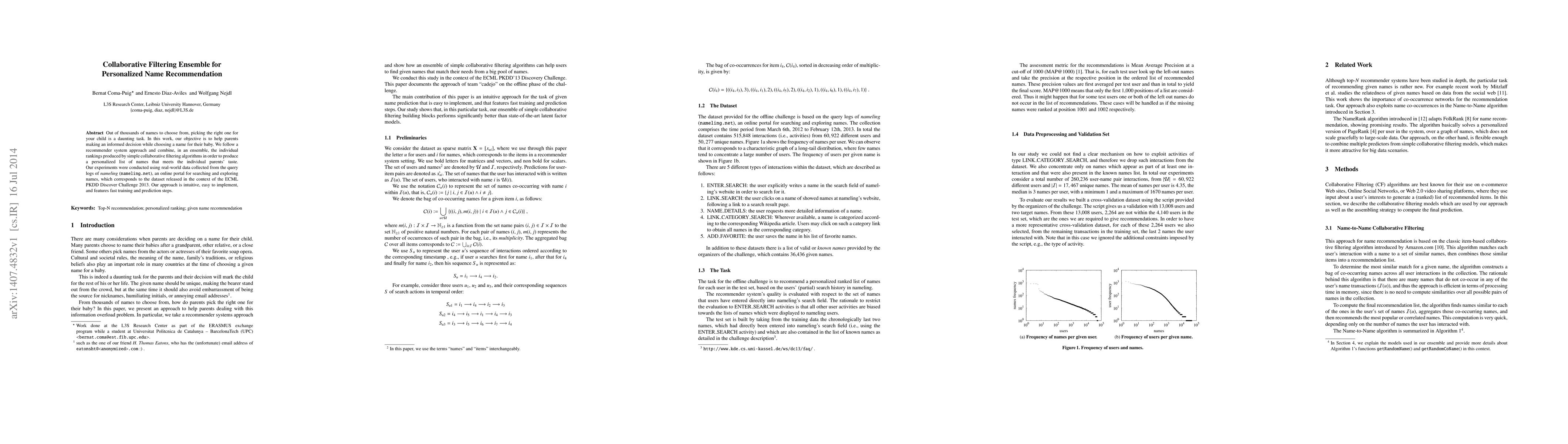 This research paper proposes a collaborative filtering ensemble for personalized name recommendations, using real-world data from an online portal to provide parents with a tailored list of names.