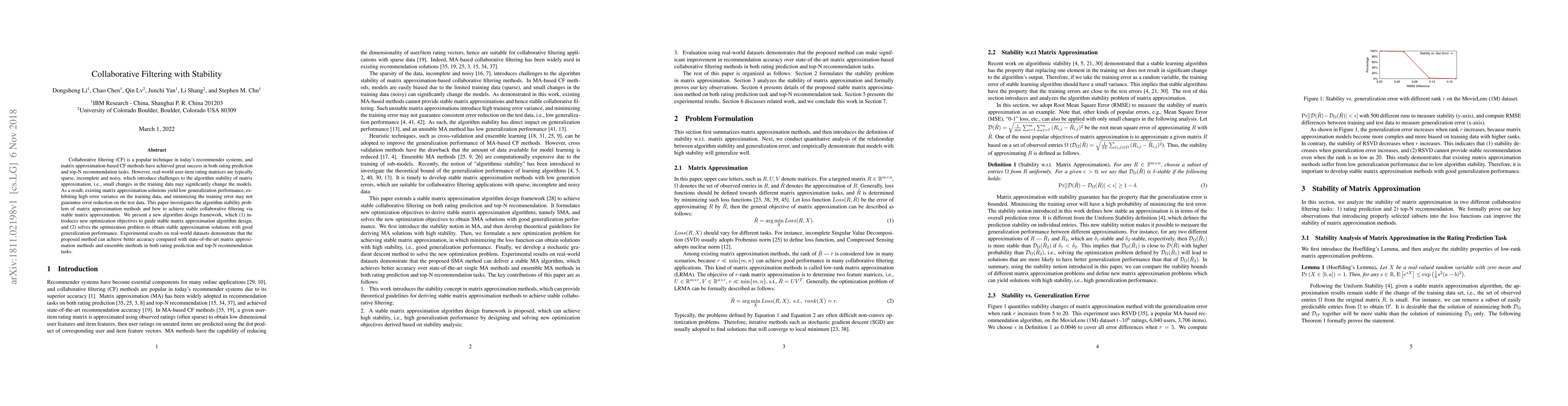 A new algorithm framework addresses the stability issue in collaborative filtering methods, achieving better accuracy on real-world datasets compared to existing state-of-the-art methods.