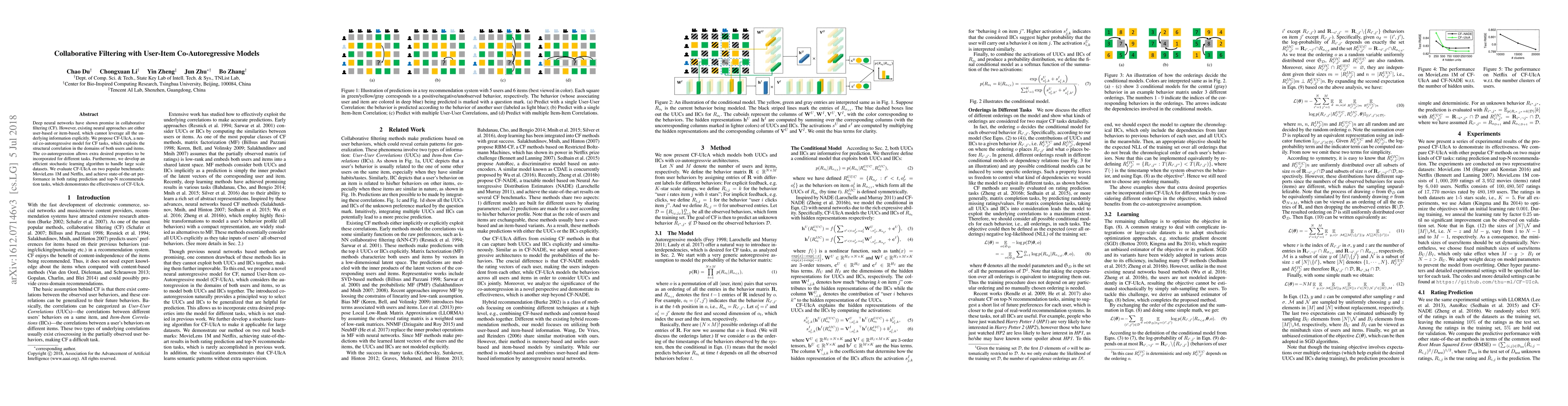 This research proposes CF-UIcA, a neural co-autoregressive model for collaborative filtering that leverages structural correlations between users and items, achieving state-of-the-art performance in rating prediction and top-N recommendation tasks on MovieLens 1M and Netflix datasets. An efficient stochastic learning algorithm supports large-scale data handling.