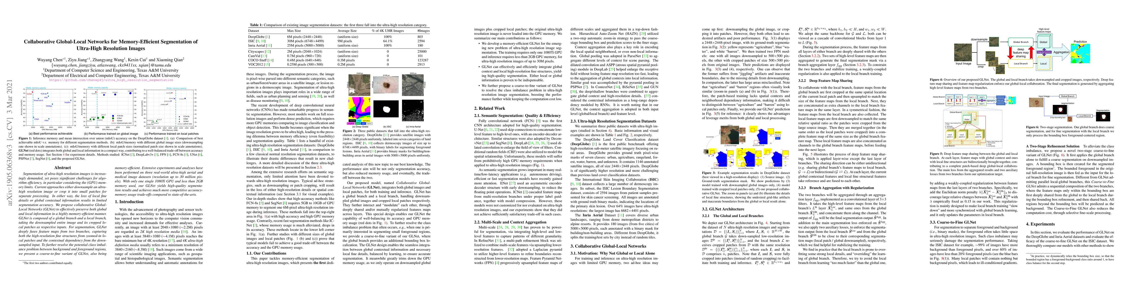 The paper proposes Global-Local Networks (GLNet) to segment ultra-high resolution images efficiently while preserving both local fine details and global context, addressing memory limitations. GLNet combines global and local branches to fuse features, achieving high accuracy with minimal memory usage on large datasets.