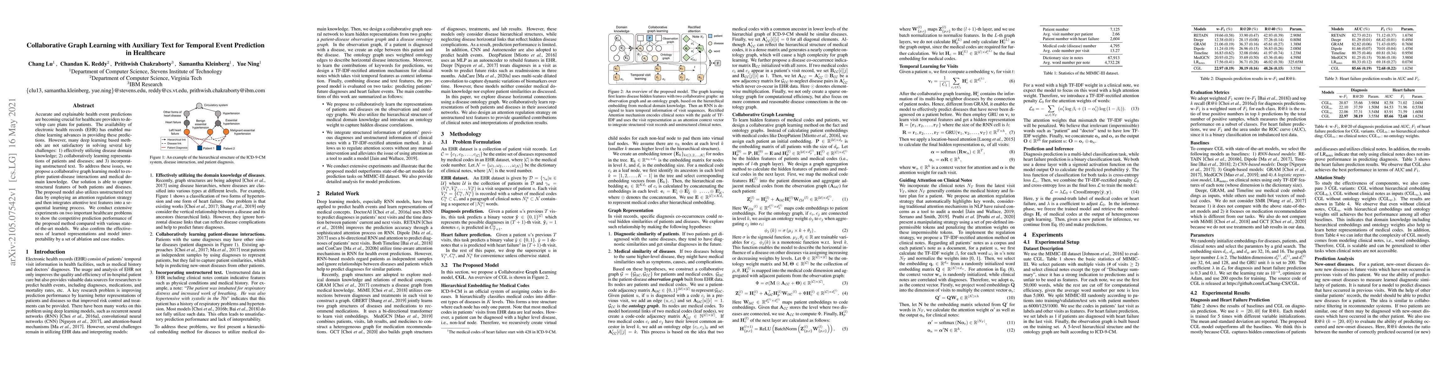 A new model for predicting health events in healthcare combines graph learning with unstructured text data to provide accurate and explainable predictions. The model outperforms existing state-of-the-art methods on two important healthcare problems.