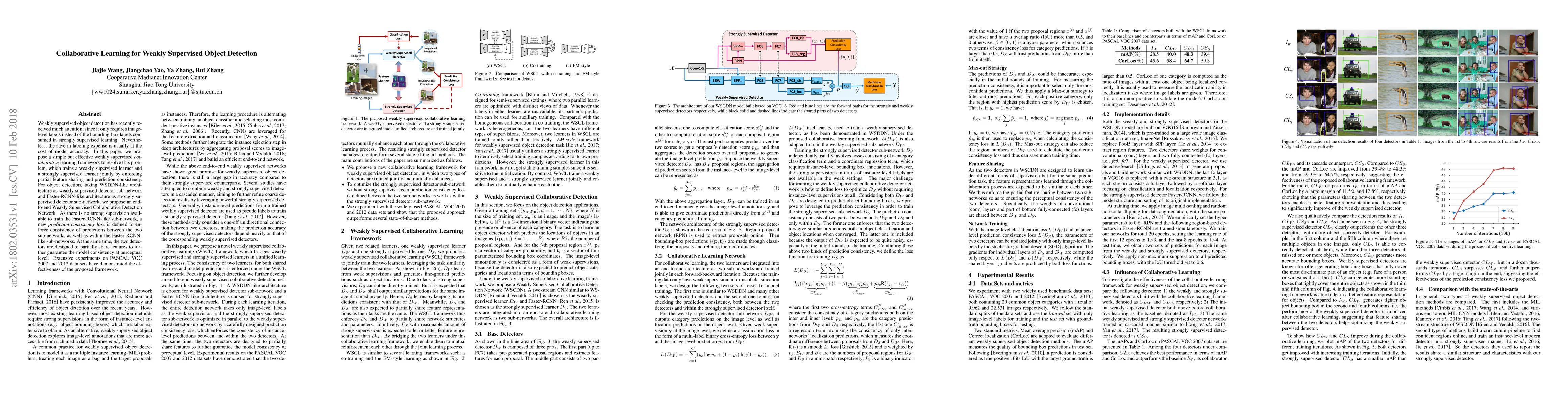 This paper introduces a collaborative learning framework for weakly supervised object detection, combining a weakly supervised detector and a strongly supervised detector through feature sharing and prediction consistency to enhance accuracy. Experiments show improved performance on PASCAL VOC datasets.