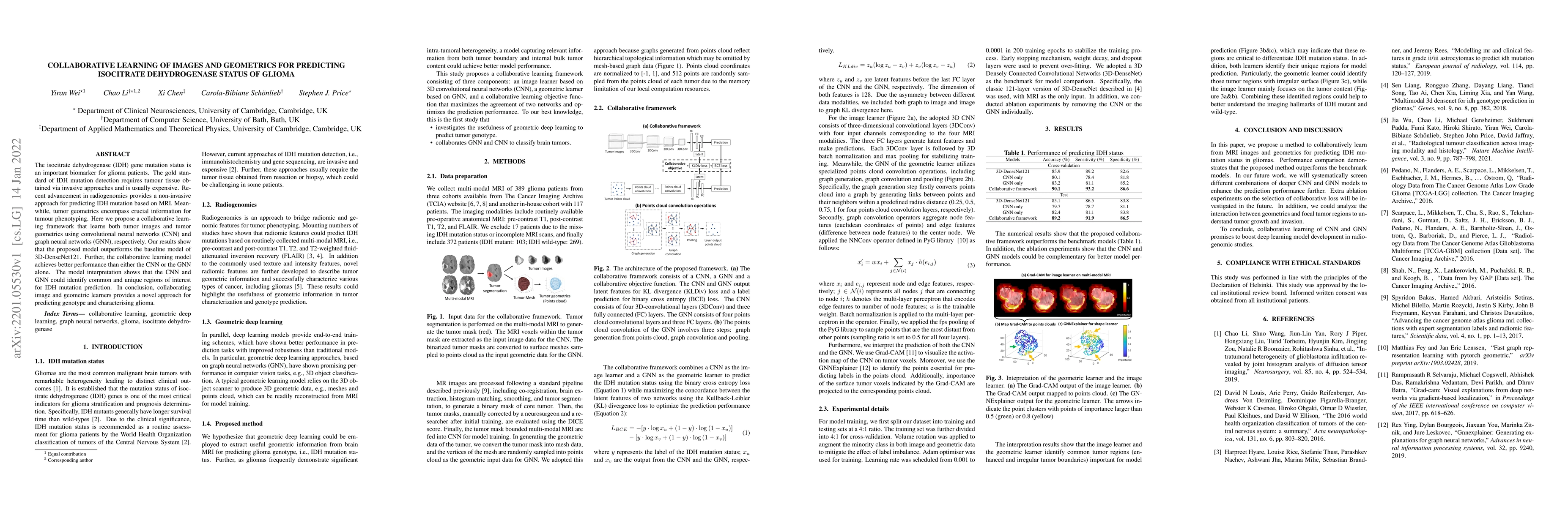 This research proposes a collaborative learning framework using CNNs and GNNs to predict isocitrate dehydrogenase status in glioma patients via MRI, achieving better performance than standalone models and identifying unique regions of interest for IDH mutation prediction.