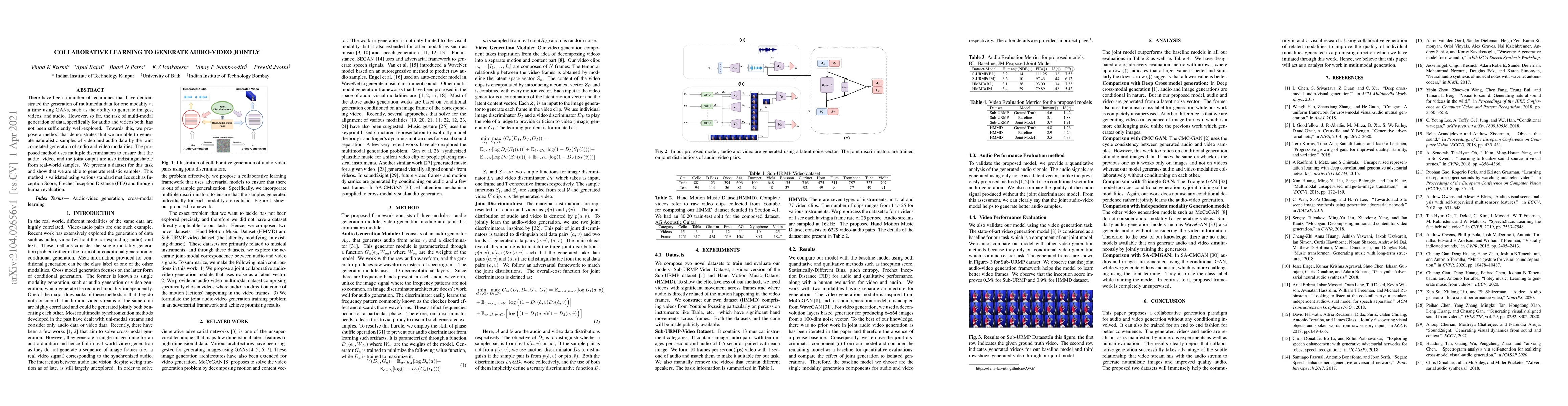 Researchers developed a method to generate realistic audio-video pairs using collaborative learning, outperforming existing techniques with high accuracy. The approach uses multiple discriminators to ensure indistinguishability from real-world samples.