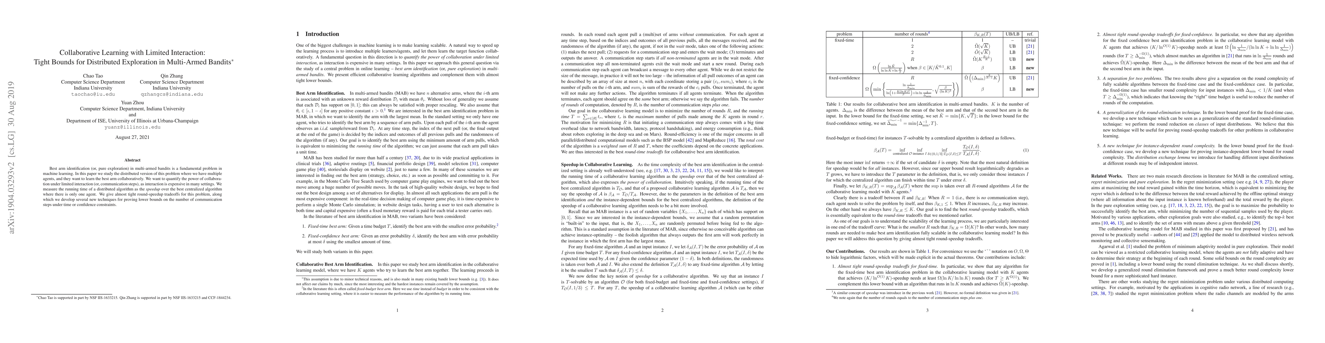This paper explores collaborative learning in distributed multi-armed bandit problems under limited interaction. It provides almost tight bounds on the speedup of distributed algorithms compared to centralized ones, introducing new techniques for proving lower bounds on communication steps.