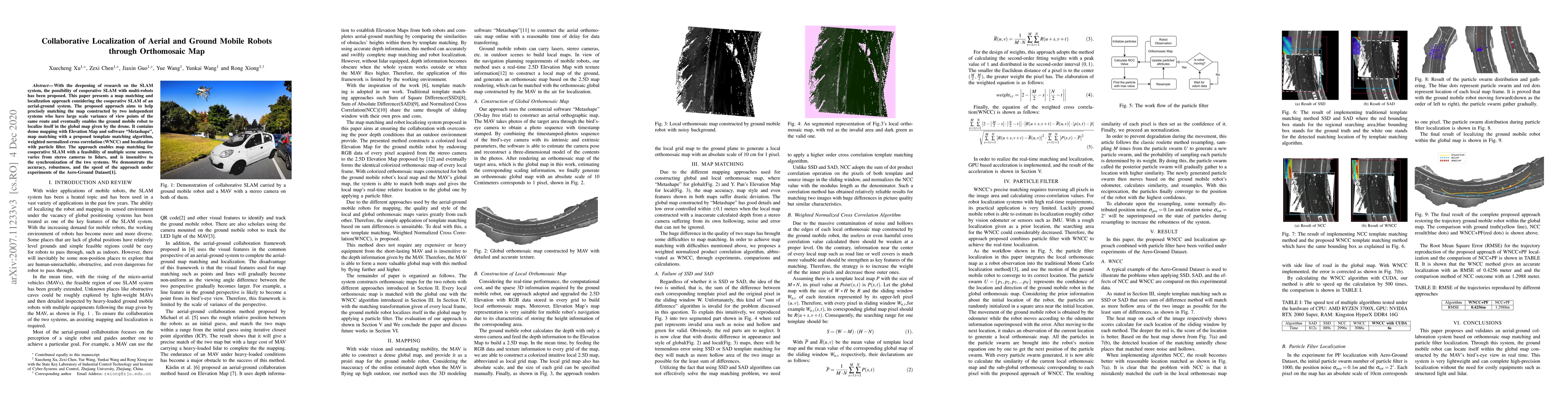 This paper proposes a collaborative SLAM approach for localizing ground mobile robots using an aerial-ground system, focusing on map matching and localization through dense mapping and a template matching algorithm. The method demonstrates accuracy and robustness in experiments using the Aero-Ground Dataset.