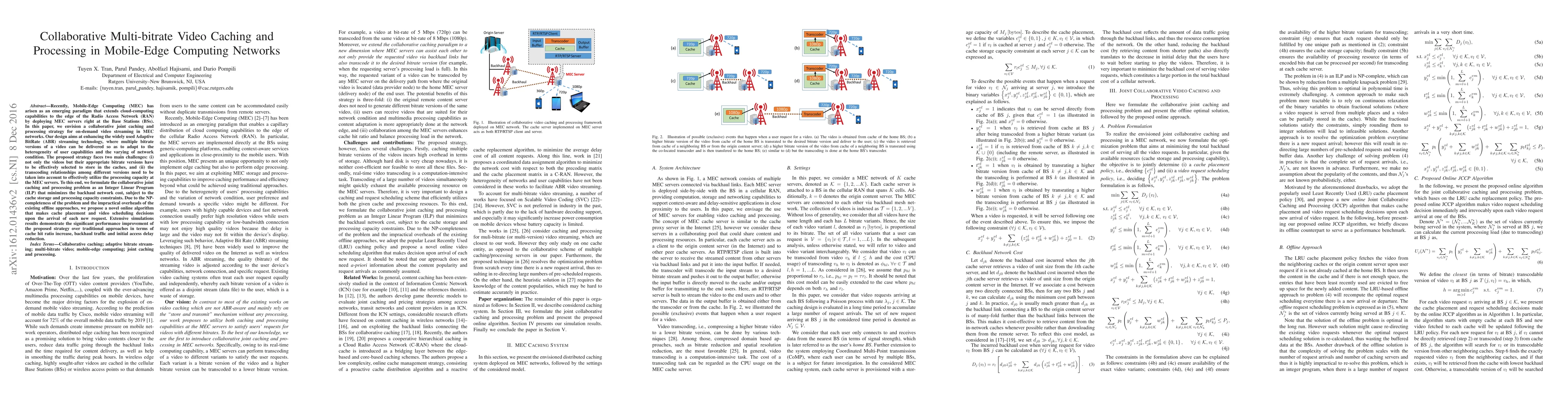 This paper proposes a collaborative joint caching and processing strategy for on-demand video streaming in Mobile-Edge Computing networks, aiming to enhance Adaptive BitRate streaming. It addresses challenges in selecting optimal bitrate versions for caching and managing transcoding relationships, formulating the problem as an Integer Linear Program and introducing an online algorithm to optimize cache placement and video scheduling.