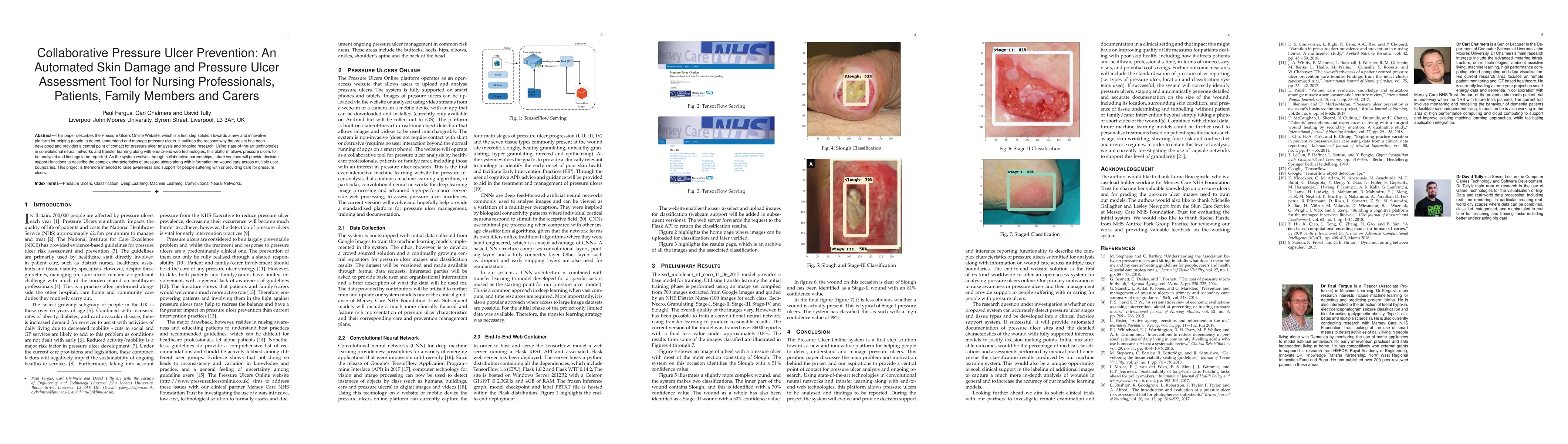 This paper describes the Pressure Ulcers Online Website, which is a first step solution towards a new and innovative platform for helping people to detect, understand and manage pressure ulcers. It outlines the reasons why the project has been developed and provides a central point of contact for pressure ulcer analysis and ongoing research. Using state-of-the-art technologies in convolutional neural networks and transfer learning along with end-to-end web technologies, this platform allows pressure ulcers to be analysed and findings to be reported. As the system evolves through collaborative partnerships, future versions will provide decision support functions to describe the complex characteristics of pressure ulcers along with information on wound care across multiple user boundaries. This project is therefore intended to raise awareness and support for people suffering with or providing care for pressure ulcers.