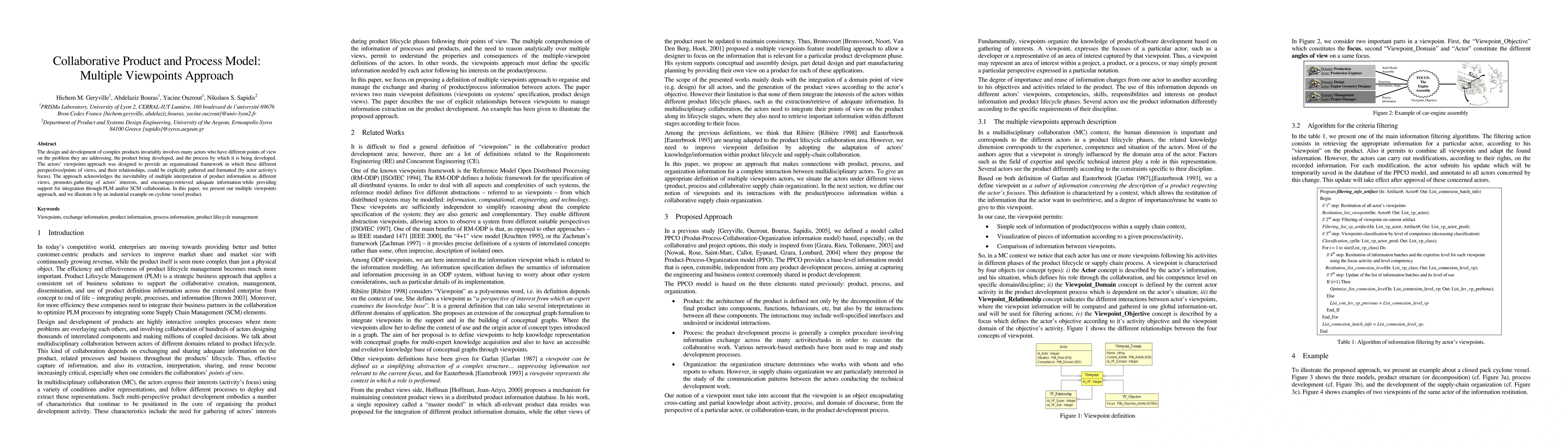 This paper introduces a collaborative framework called the Multiple Viewpoints approach to manage diverse perspectives in complex product design and development. It emphasizes integrating different actors' viewpoints to enhance information gathering and support integration through product lifecycle management (PLM) and supply chain management (SCM) collaboration, illustrated by an industrial example of a cyclone vessel.