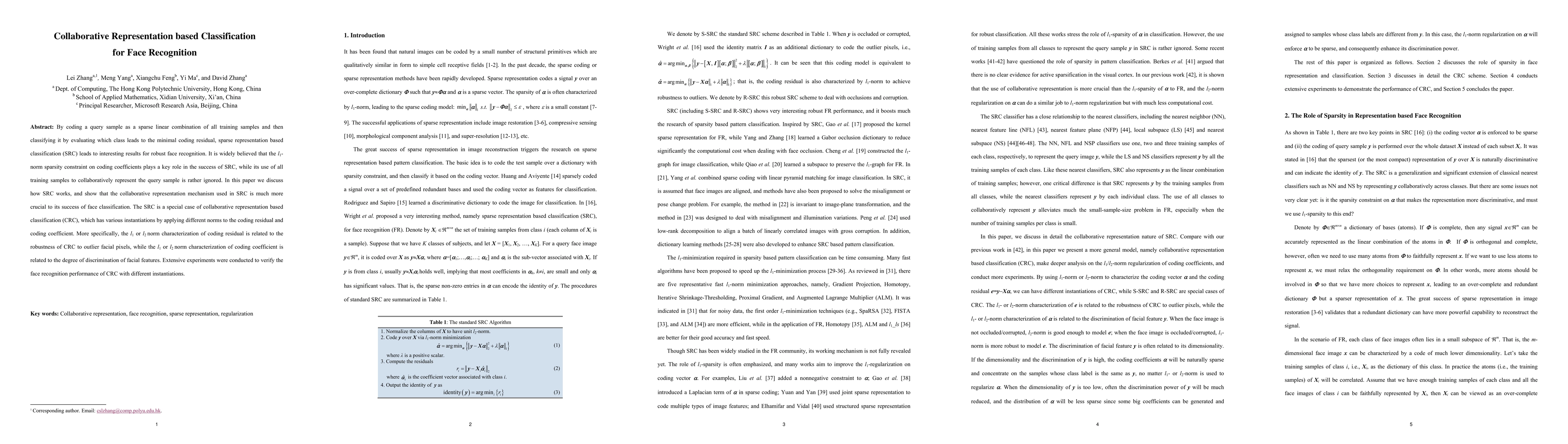This paper explores collaborative representation based classification (CRC) for face recognition, emphasizing that the collaborative representation mechanism is crucial for successful face classification, more so than the l1-norm sparsity constraint. CRC, an extension of sparse representation based classification (SRC), uses various norms to optimize robustness and discrimination, with extensive experiments validating its accuracy and efficiency.