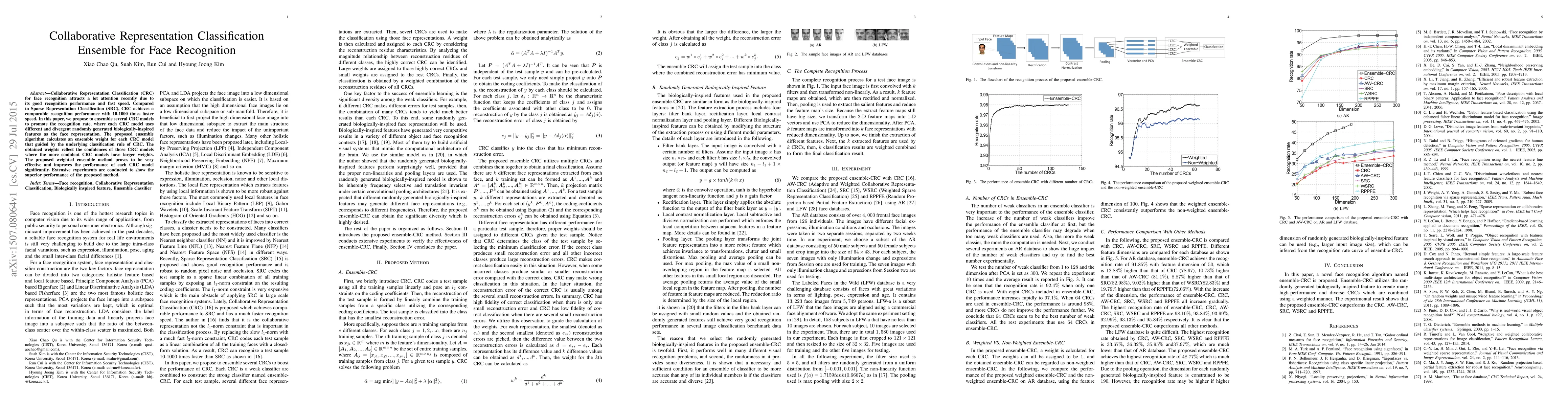 This paper proposes an ensemble of Collaborative Representation Classification (CRC) models for enhanced face recognition performance. Each CRC model uses different biologically-inspired features, and the ensemble assigns weights based on model confidence, significantly improving recognition rates over individual CRC models.