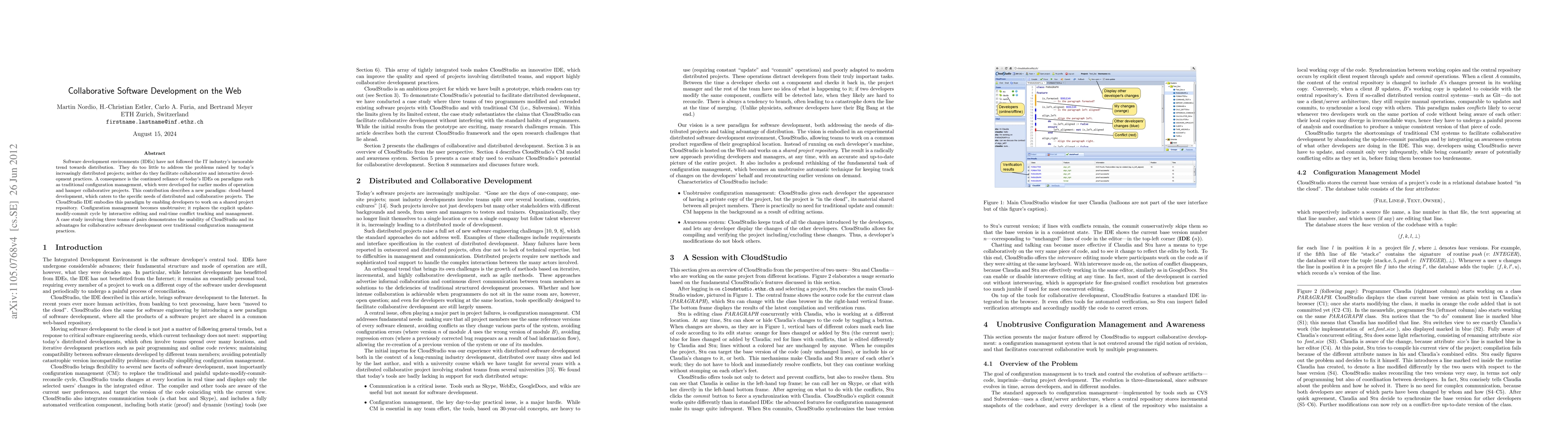 This paper introduces CloudStudio IDE, a cloud-based development environment designed to facilitate collaborative software development in distributed projects. It replaces traditional configuration management with real-time conflict tracking, demonstrating improved usability through a case study involving multiple development teams.