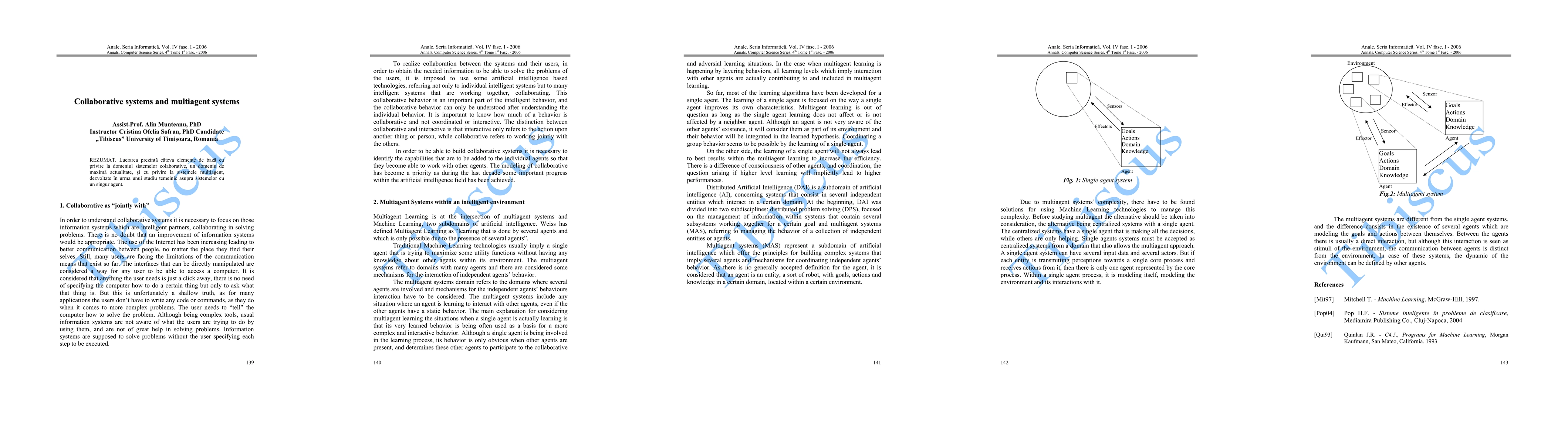 This paper presents some basic elements regarding the domain of the collaborative systems, a domain of maximum actuality and also the multiagent systems, developed as a result of a sound study on the one-agent systems.