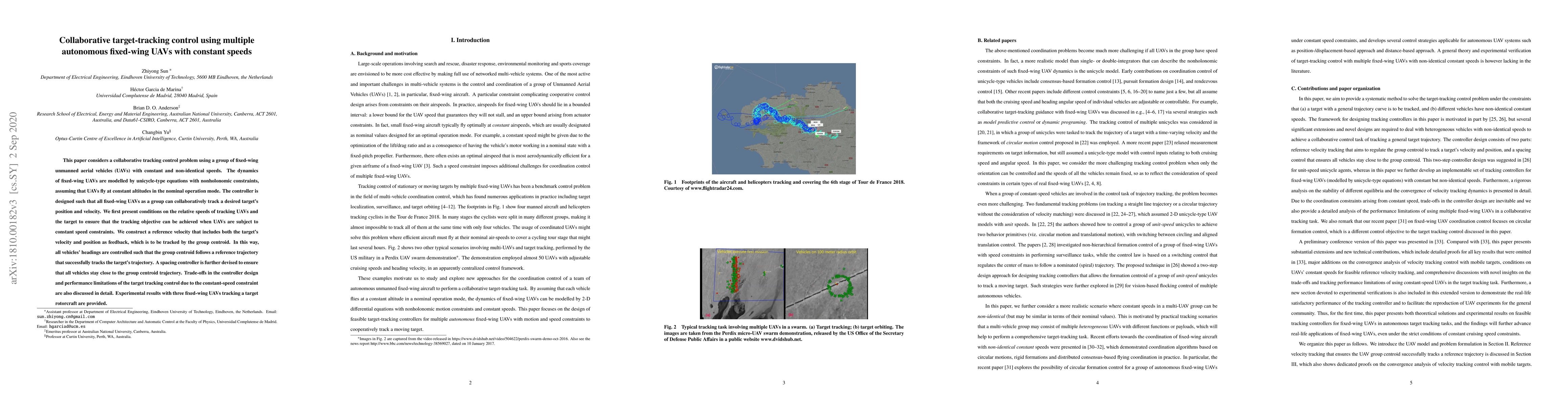 This paper proposes a collaborative target-tracking control strategy for multiple autonomous fixed-wing UAVs with constant speeds, ensuring the group centroid follows a reference trajectory based on the target's velocity and position. Experimental results demonstrate the effectiveness of the proposed control method in tracking a target rotorcraft.