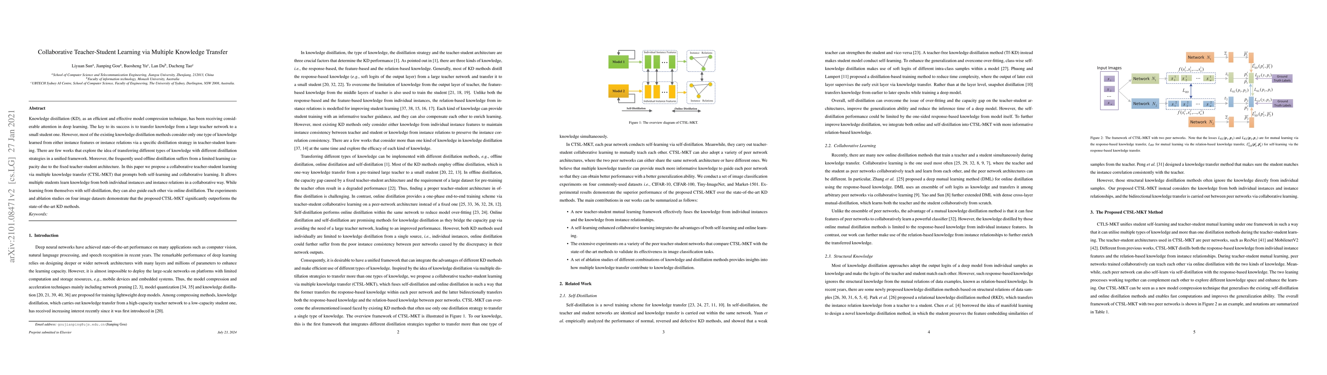 This paper proposes a collaborative teacher-student learning framework called CTSL-MKT that leverages multiple knowledge transfer strategies, combining self-distillation and online distillation to enhance model compression and performance. Experimental results show that CTSL-MKT outperforms existing knowledge distillation methods on image datasets.