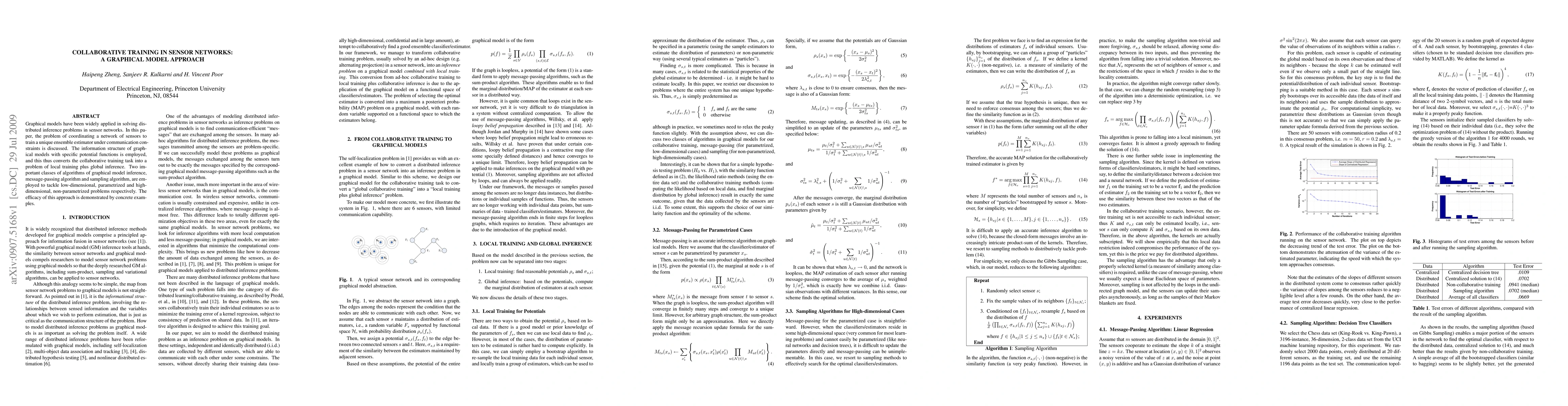 A new approach using graphical models is proposed to train a sensor network under communication constraints, combining local training with global inference for low- and high-dimensional problems.