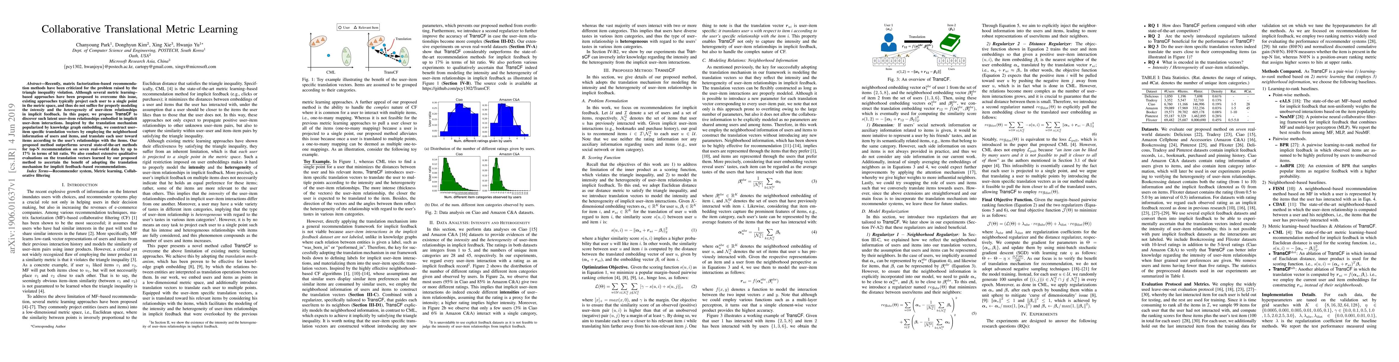 This research is significant as it proposes a novel method, TransCF, that effectively models the intensity and heterogeneity of user-item relationships in implicit feedback, which previous metric learning-based approaches have overlooked.