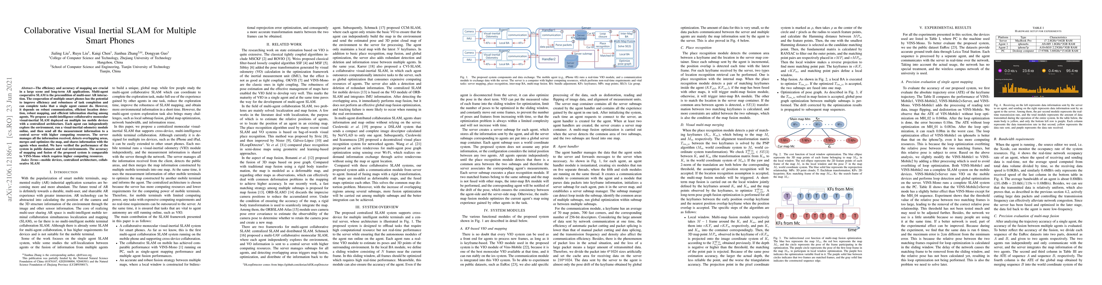 This paper proposes a collaborative visual-inertial SLAM system for multiple smart phones to enhance mapping efficiency and accuracy in large scenes and long-term AR applications. The system employs a centralized architecture where each phone runs local visual-inertial odometry and shares data with a central server for map merging and optimization.