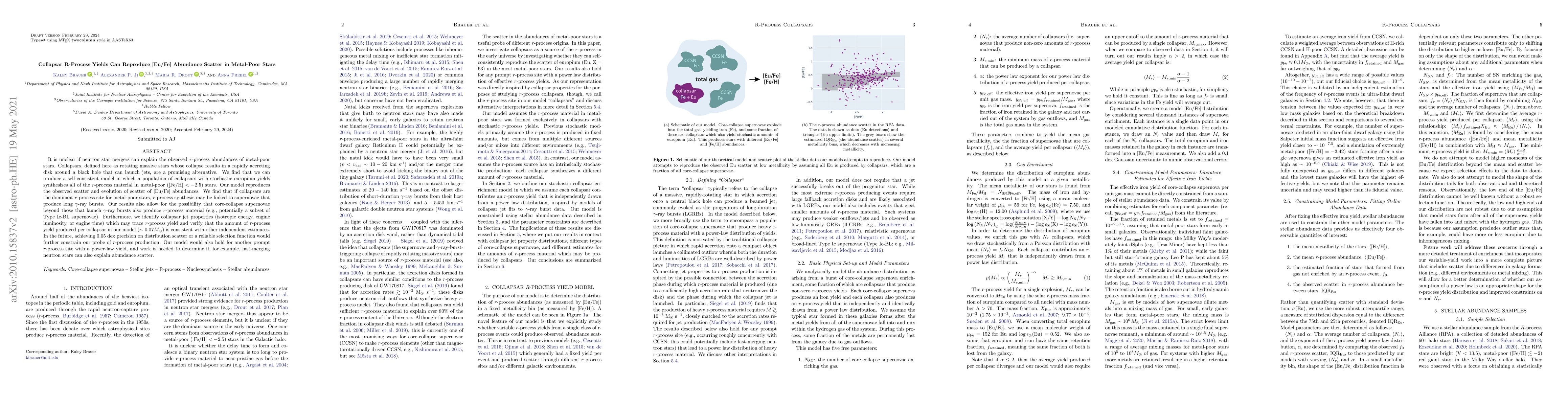 The paper presents a detailed stochastic collapsar model for r-process element production, linking it to LGRB properties and providing a framework for future research on alternative r-process sites.