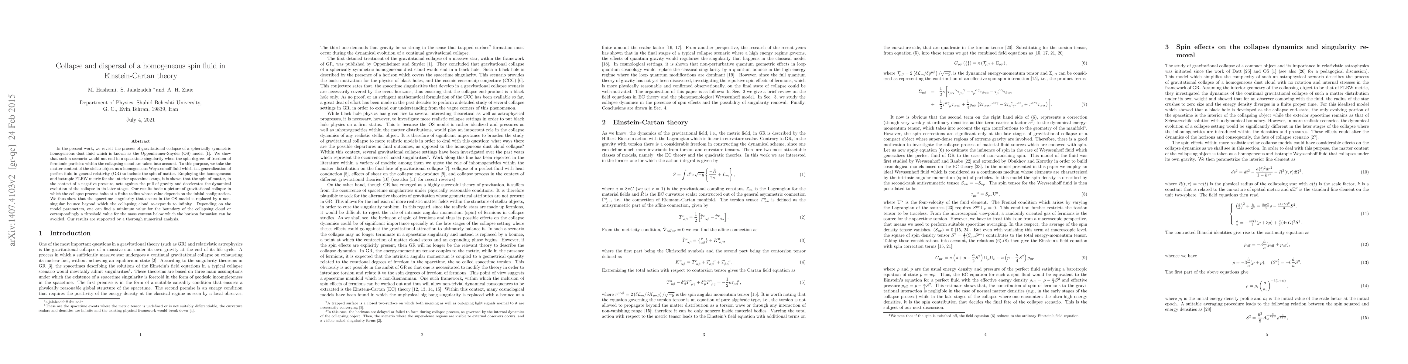 Researchers in Einstein-Cartan theory found that gravitational collapse can halt at a finite radius due to the spin of matter, replacing a singularity with a non-singular bounce.