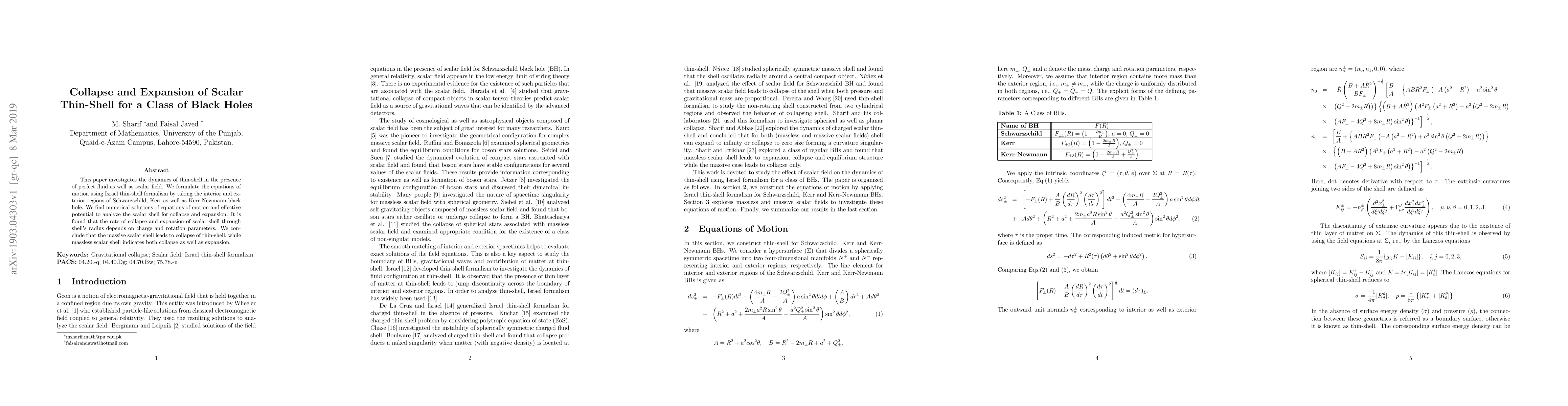 This paper investigates the dynamics of thin-shell in the presence of perfect fluid as well as the scalar field. We formulate the equations of motion using Israel thin-shell formalism by taking the interior and exterior regions of Schwarzschild, Kerr as well as Kerr-Newmann black hole. We find numerical solutions of equations of motion and effective potential to analyze the scalar shell for collapse and expansion. It is found that the rate of collapse and expansion of scalar shell through shell's radius depends on charge and rotation parameters. We conclude that the massive scalar shell leads to a collapse of thin-shell, while massless scalar shell indicates both collapses as well as expansion.