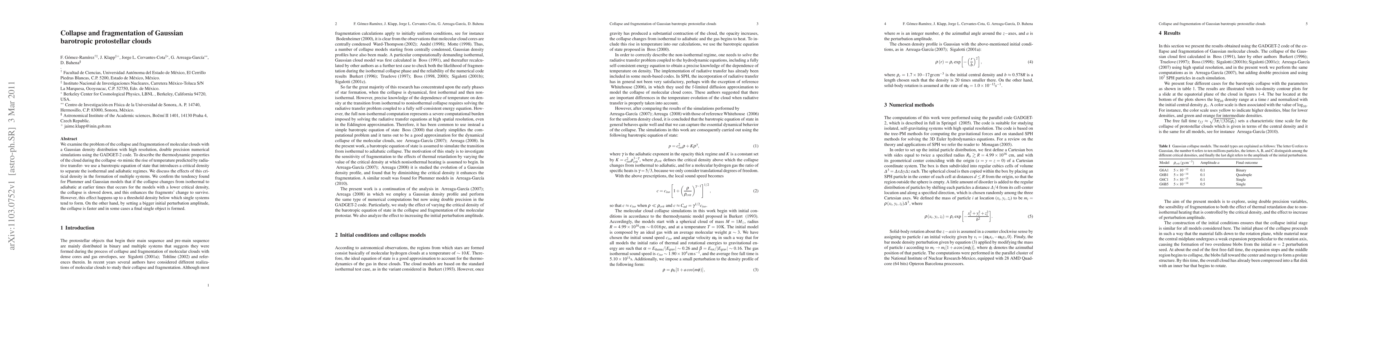 We examine the problem of the collapse and fragmentation of molecular clouds with a Gaussian density distribution with high resolution, double precision numerical simulations using the GADGET-2 code. To describe the thermodynamic properties of the cloud during the collapse -to mimic the rise of temperature predicted by radiative transfer- we use a barotropic equation of state that introduces a critical density to separate the isothermal and adiabatic regimes. We discuss the effects of this critical density in the formation of multiple systems. We confirm the tendency found for Plummer and Gaussian models that if the collapse changes from isothermal to adiabatic at earlier times that occurs for the models with a lower critical density, the collapse is slowed down, and this enhances the fragments' change to survive. However, this effect happens up to a threshold density below which single systems tend to form. On the other hand, by setting a bigger initial perturbation amplitude, the collapse is faster and in some cases a final single object is formed.