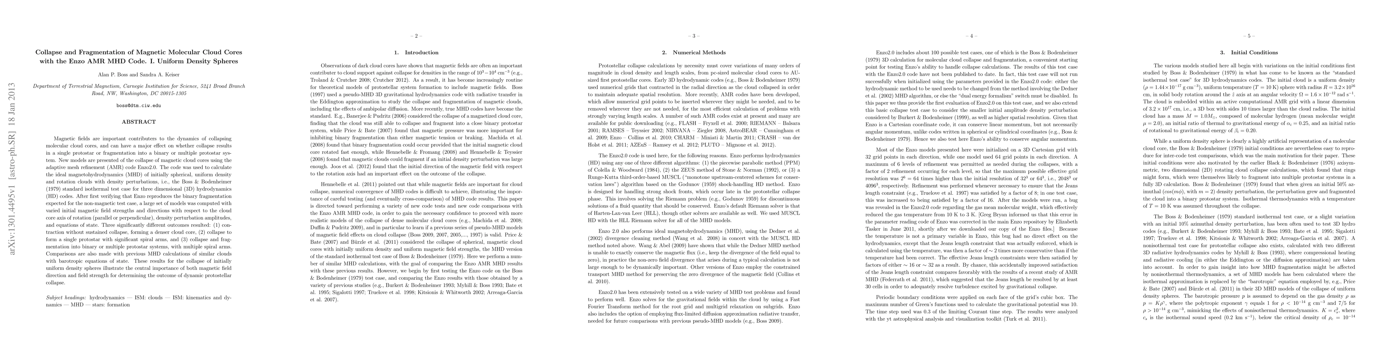 This paper investigates the dynamics of collapsing magnetic molecular cloud cores using the Enzo AMR MHD code, focusing on initially spherical, uniform density clouds. It finds three main outcomes: contraction without collapse, single protostar formation with spiral arms, and fragmentation into binary or multiple protostars, highlighting the critical role of magnetic field strength and direction in determining the collapse outcome.